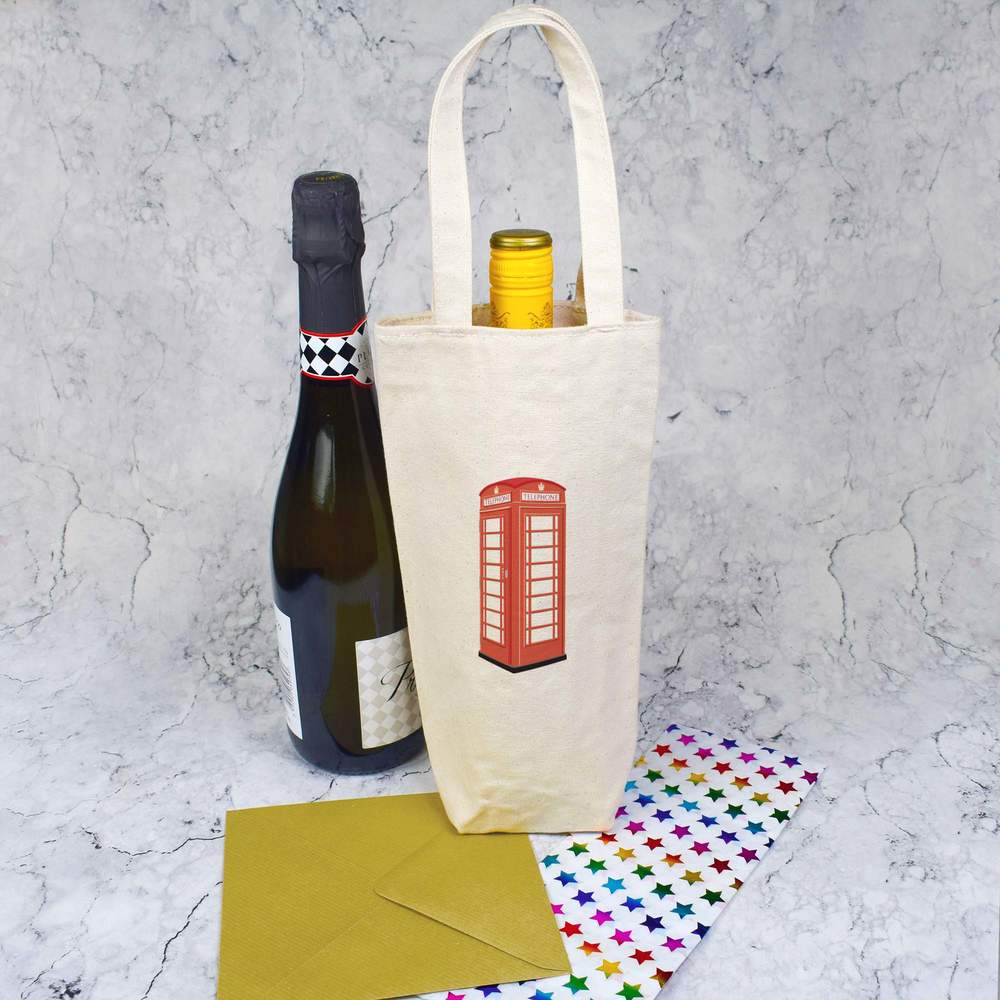 Give a gift in style with this wonderful wine bottle bag. Printed one side with a unique design, this bag oozes with class. Each one is made from thick natural canvas and its high quality finish means it can be used again and again; perfect for picnics and adventures where a bottle of the finest wine is required. This bottle bag can comfortably carry a single standard wine or champagne bottle, up to 1.5 litres, but please check the bag dimensions are suitable before purchasing.