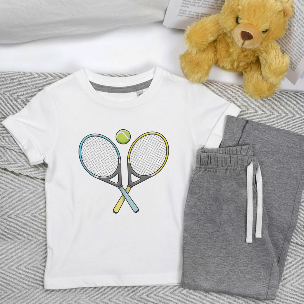 'Tennis' Kids Cotton Pyjama Set – Comfortable Children's Nightwear, Sleepwear and Loungewear - Unisex for Boys and Girls - Grey, 3-4 Years (KP00016677)