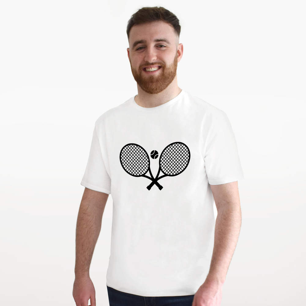 'Tennis Rackets And Ball' Unisex T-Shirt - 100 % Cotton, White, S (TA00287148)