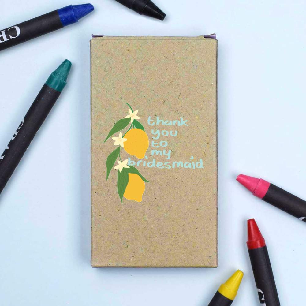 - A set of 6 vibrant colouring crayons with a handy storage box
