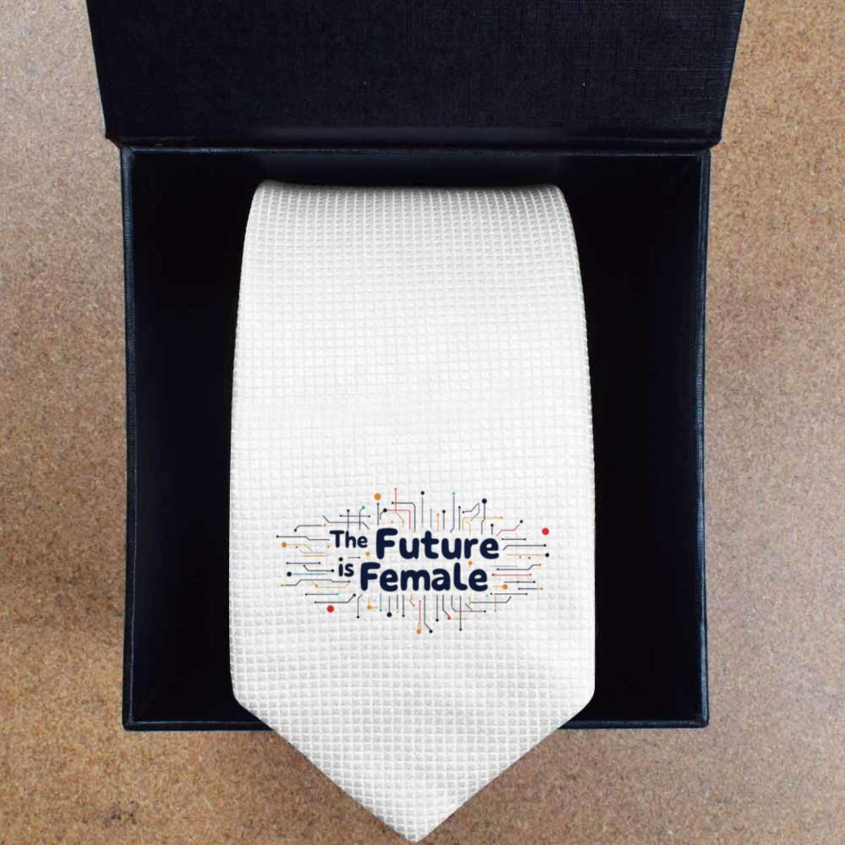 This stylish slim white tie is guaranteed to add class to any outfit. Printed on the front with a design from one of our talented designers, these ties are perfect for formal events, special occasions or making a statement at the office.