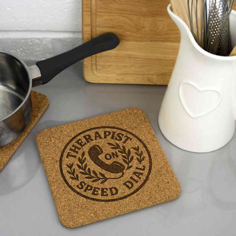 'Therapist On Speed Dial' Square Cork Trivet / Pot Stand (TR00030194)