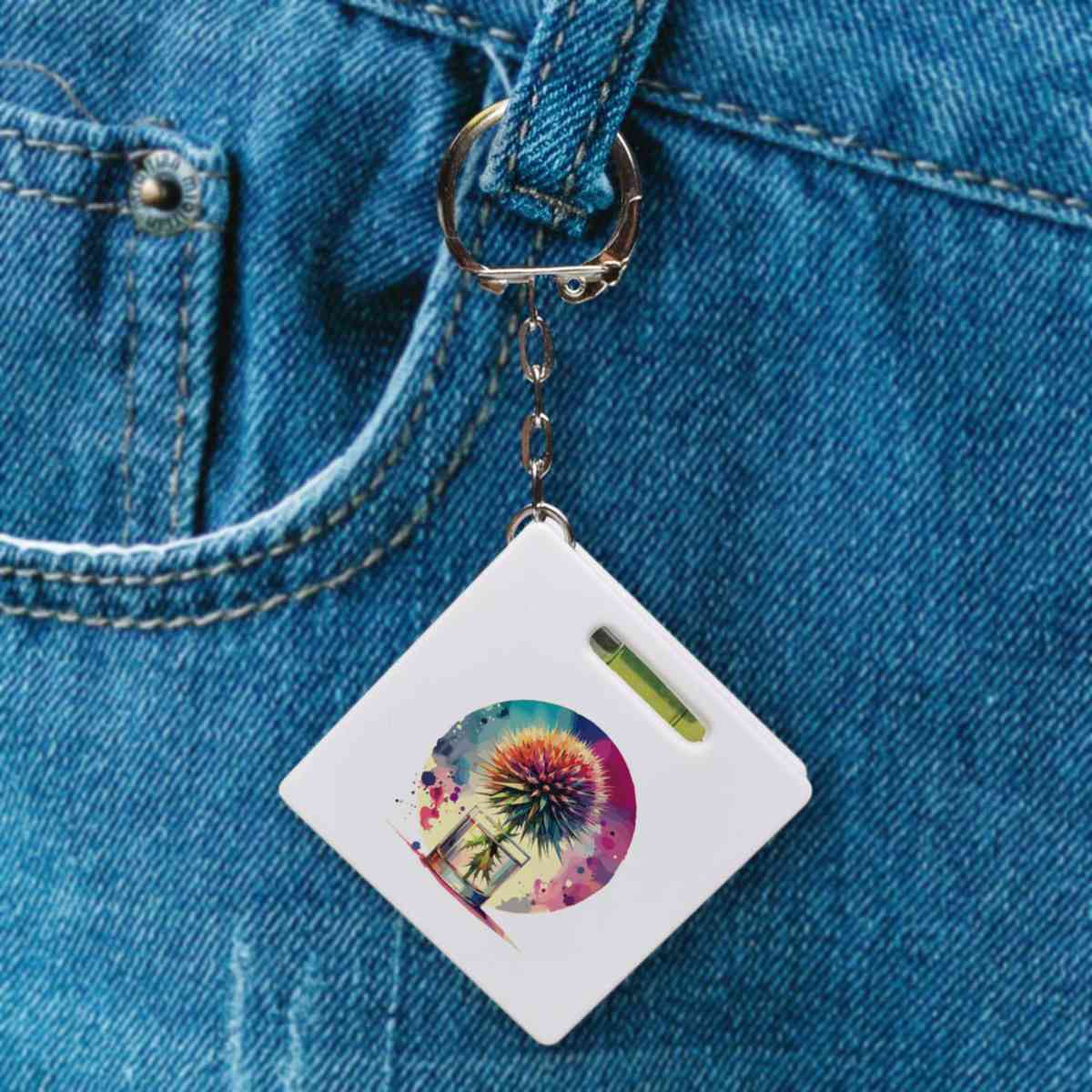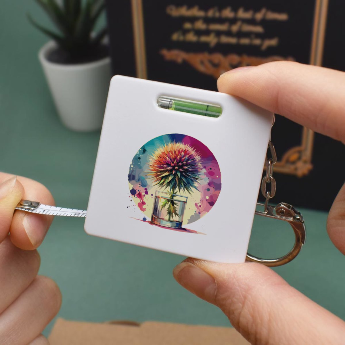 This multifunctional tool offers both a tape measure and spirit level in one handy little accessory. The retractable, 1 metre tape measure has both imperial and metric units, while the flat edges around its plastic casing provide the ability to check both vertical and horizontal surfaces with a mini spirit level. The compact and lightweight design makes it easy to carry around; simply attach with the keychain provided and whip it out when needed. Each keyring tape measure tool is printed on one side with a unique design.