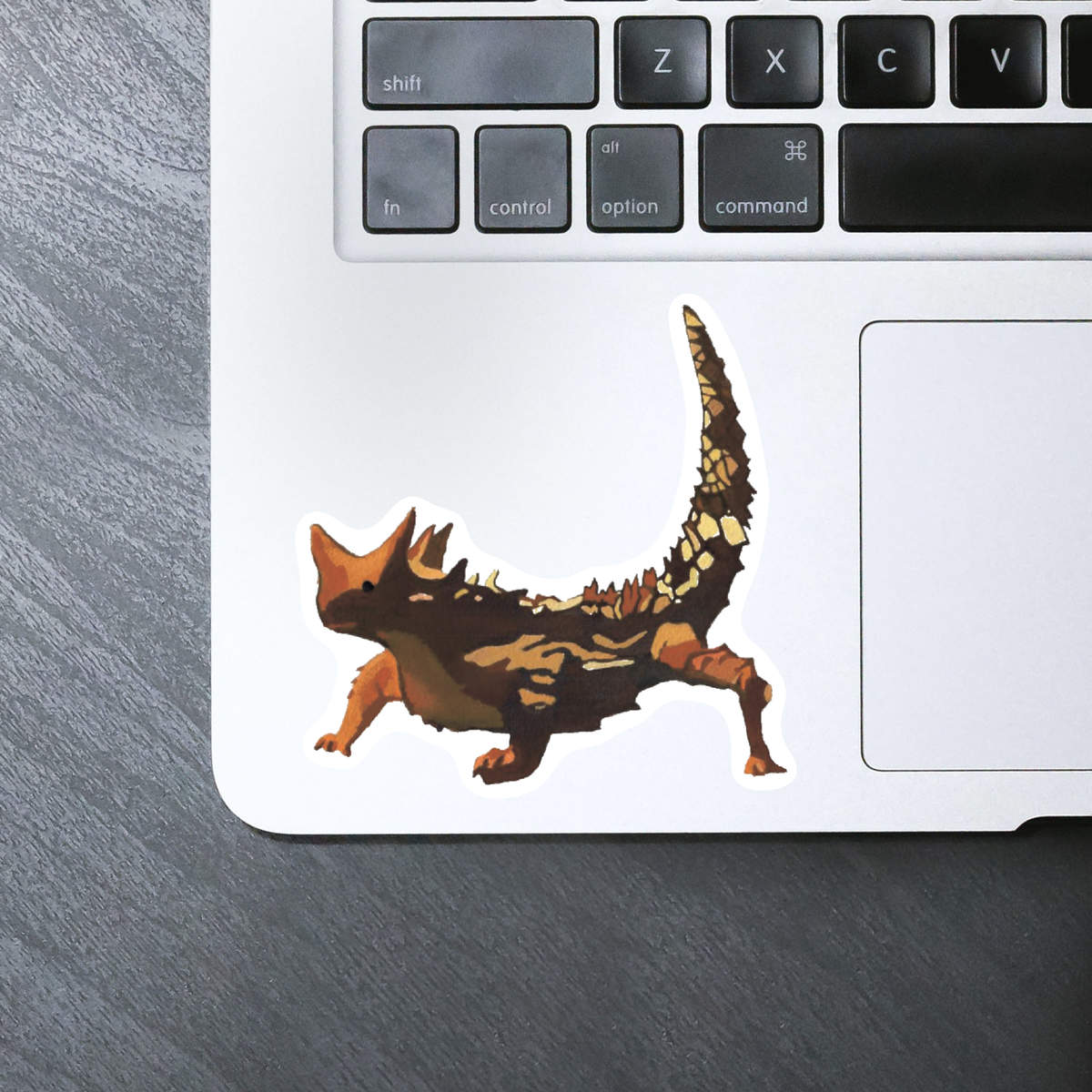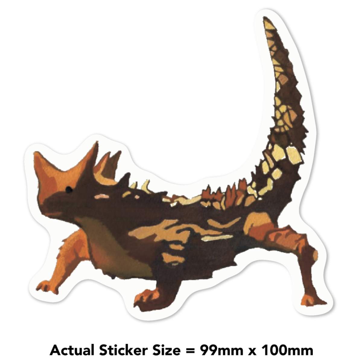 'You will love this rendition of a Thorny Devil done in Gouache. The Thorny Devil is a creature which roams the arid regions of Central & Western Australia and lives on a diet of just ants. When threatened, it curls itself up in a small ball & camouflages itself. It's spiny exterior makes himself unpleasant to eat.'