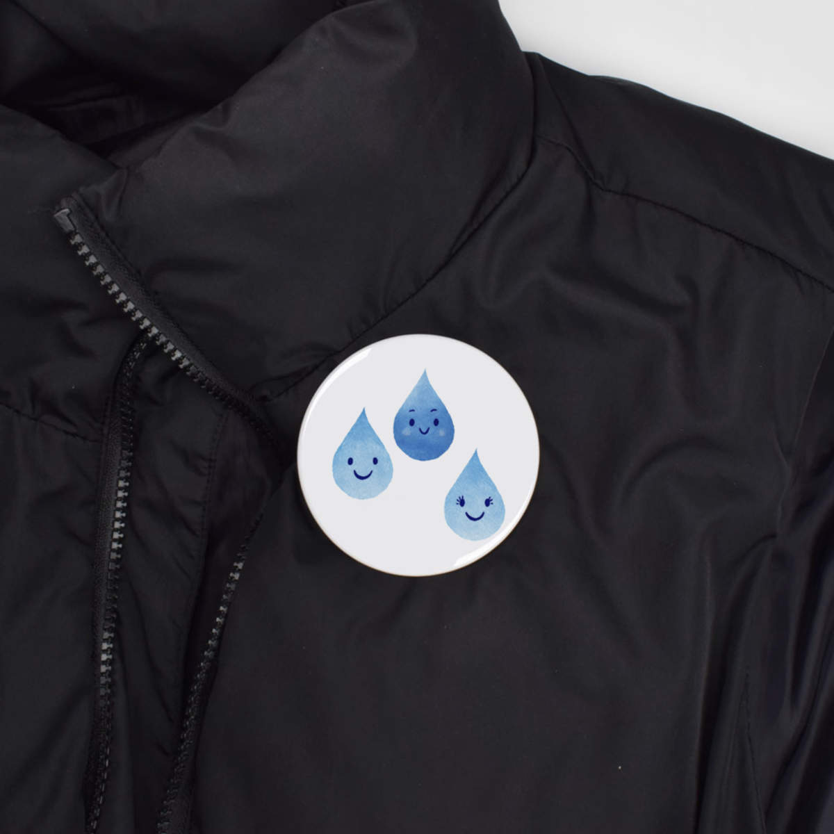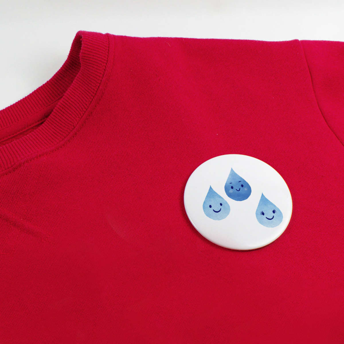 'Three Happy Water Drops' Button Pin Badges (BB056140)