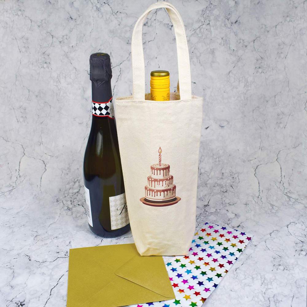 Give a gift in style with this wonderful wine bottle bag. Printed one side with a unique design, this bag oozes with class. Each one is made from thick natural canvas and its high quality finish means it can be used again and again; perfect for picnics and adventures where a bottle of the finest wine is required. This bottle bag can comfortably carry a single standard wine or champagne bottle, up to 1.5 litres, but please check the bag dimensions are suitable before purchasing.