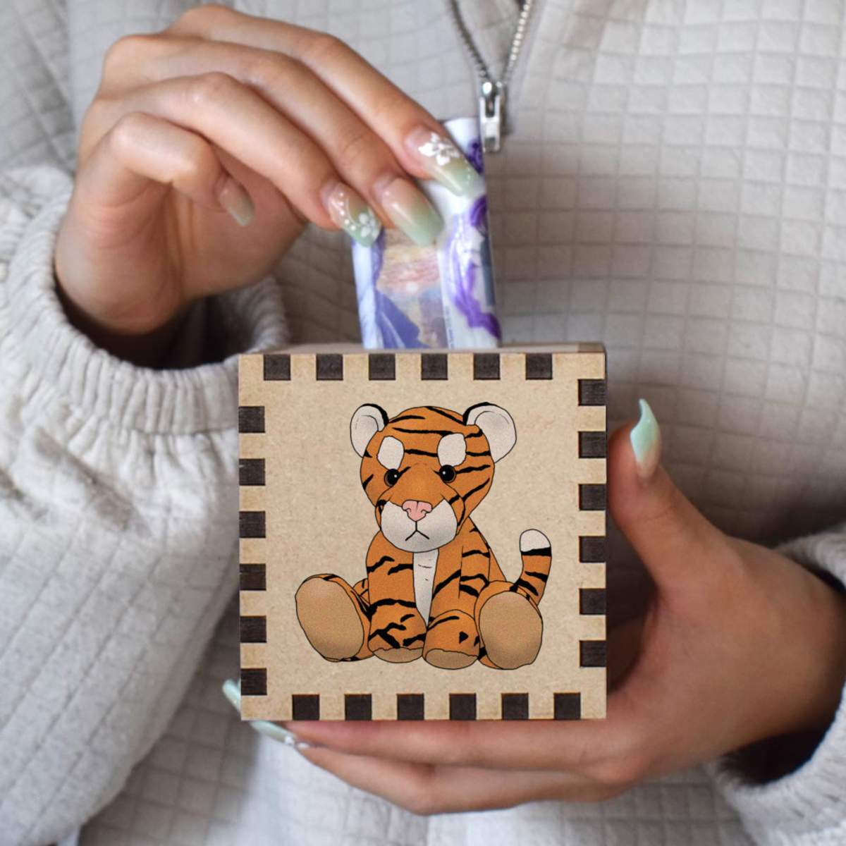 An 8.5cm wooden money box made out of the finest quality MDF and printed on all four sides with a unique design. The bottom is flat and the top has a slot for coins, the box itself is 85mm on each side, with a 35mm x 5mm coin slot, so please be sure it's suitable for you.