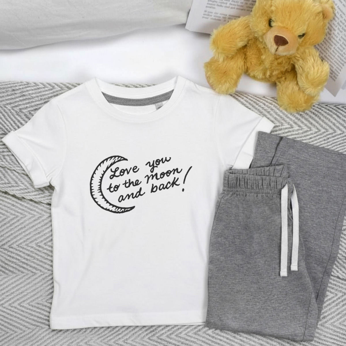 'To The Moon And Back' Kids Cotton Pyjama Set – Comfortable Children's Nightwear, Sleepwear and Loungewear - Unisex for Boys and Girls – Grey (KP011046)