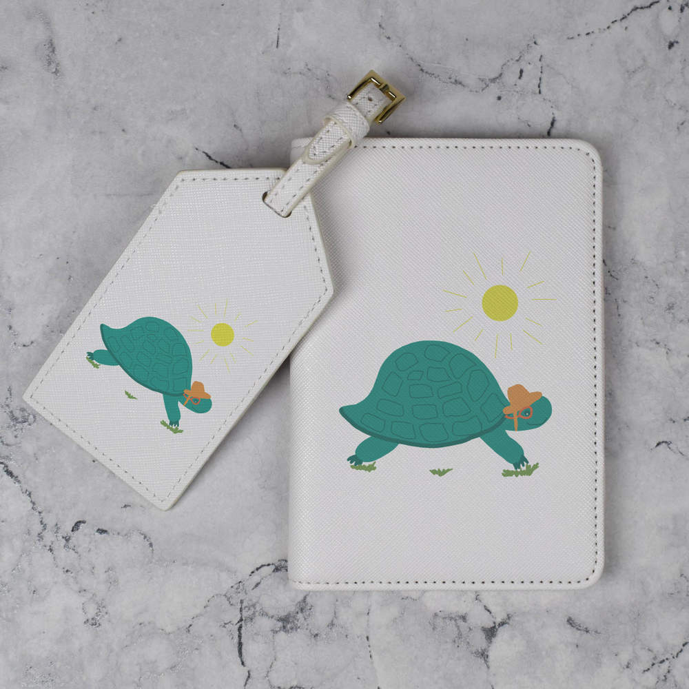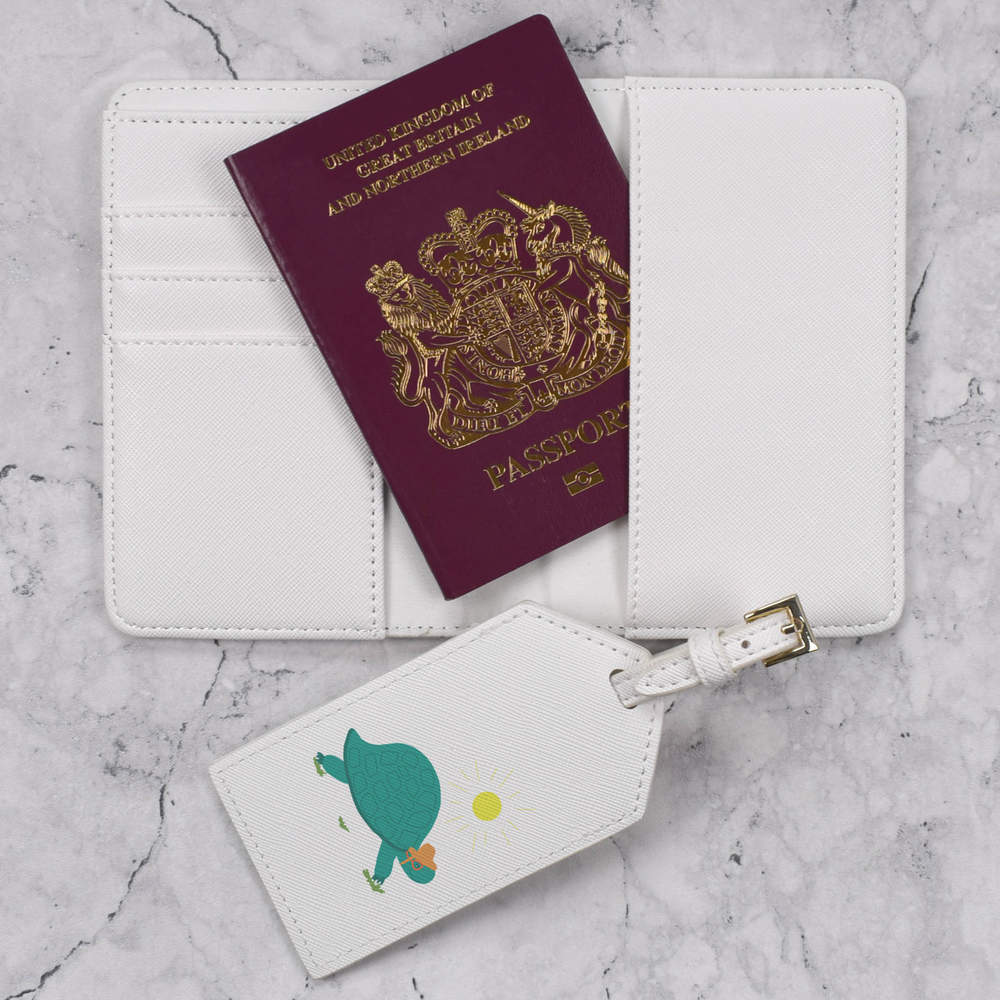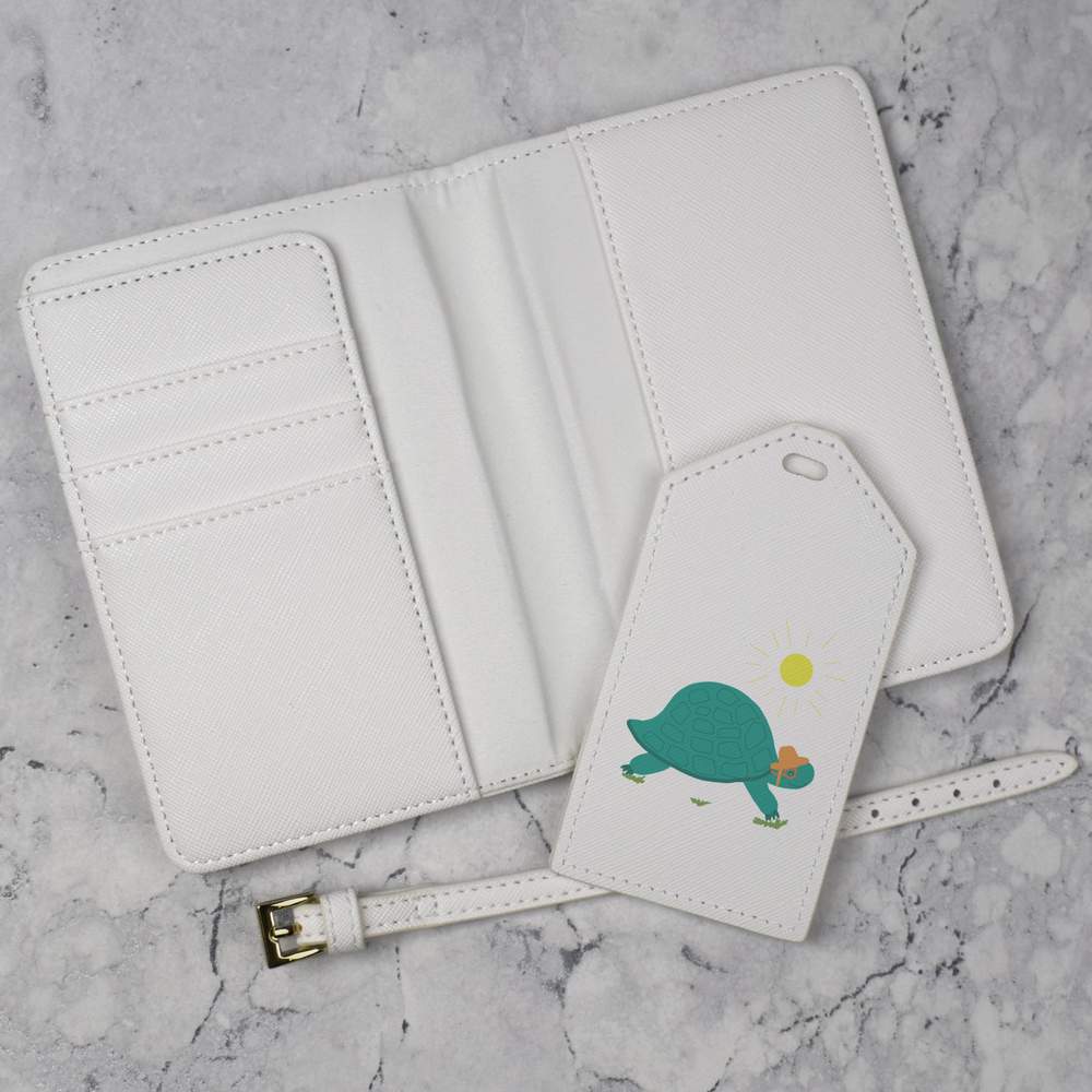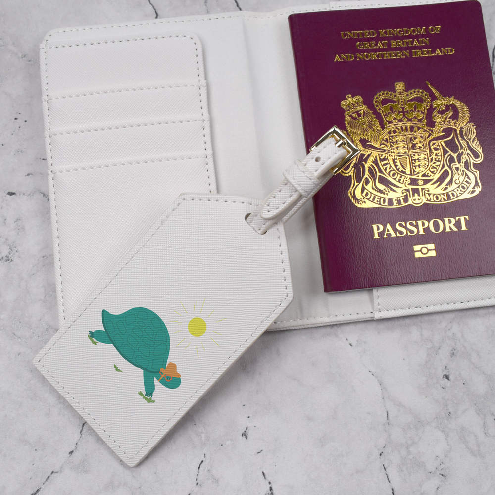A luxury travel set for holiday makers and jet setters! This premium duo consists of a passport cover and matching luggage tag; both made from white, leather-look PU and printed with a unique design.