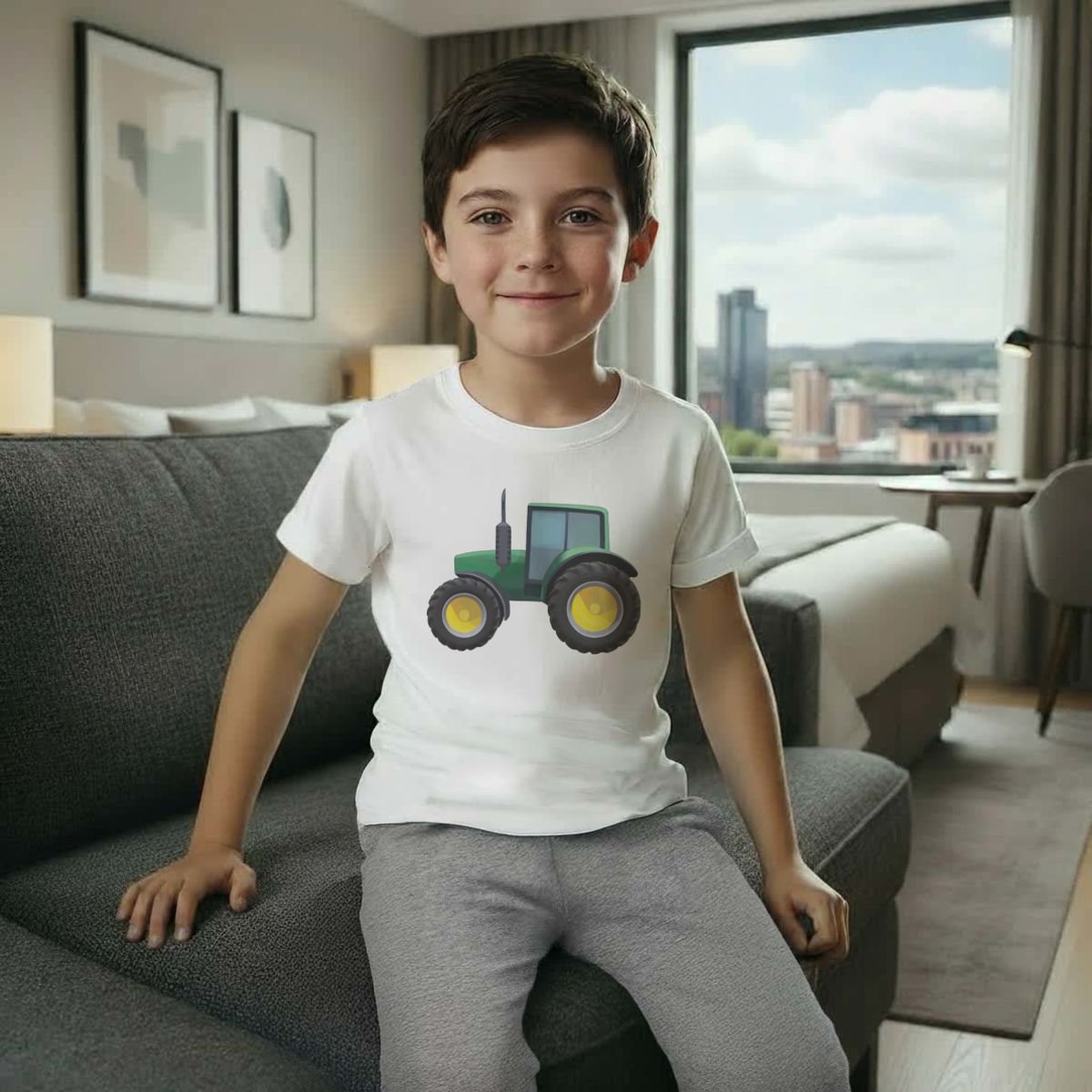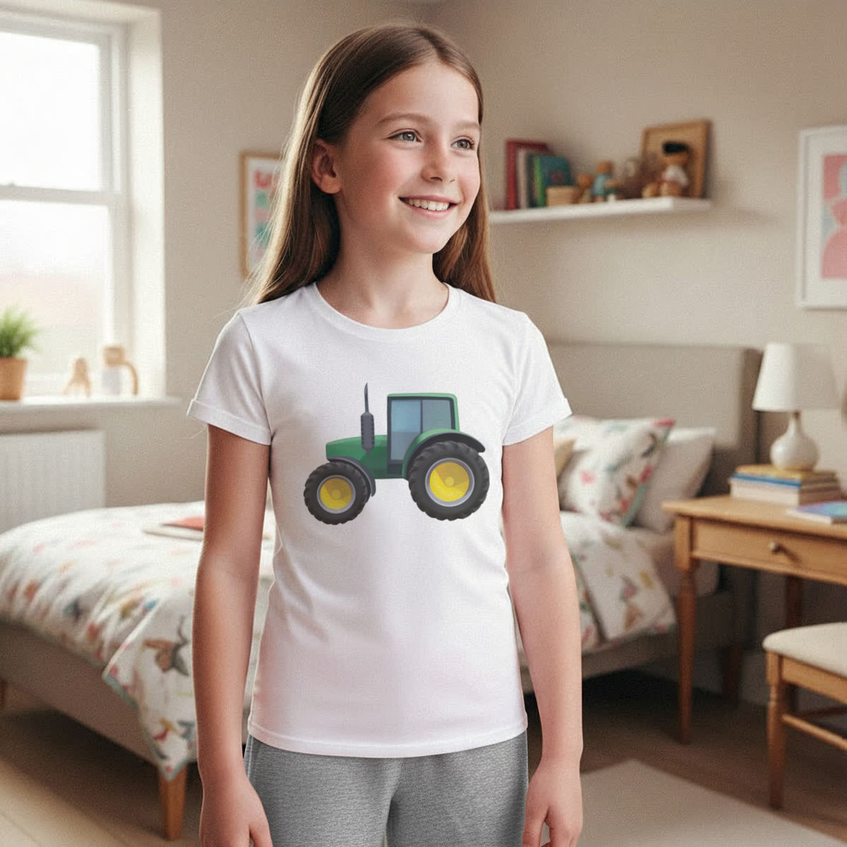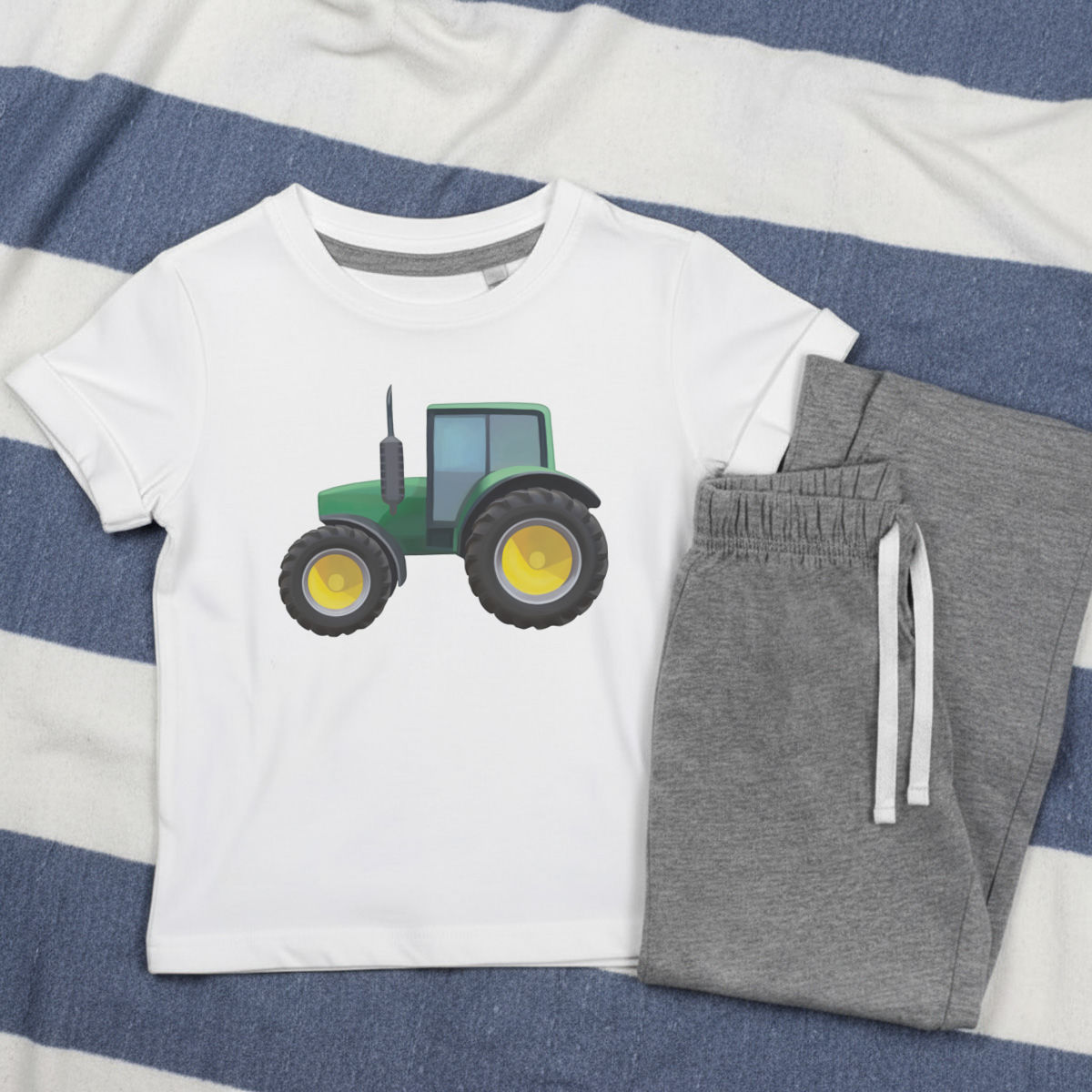 'Tractor' Kids Cotton Pyjama Set – Comfortable Children's Nightwear, Sleepwear and Loungewear - Powerful Farming Machinery Field Vehicle - Unisex for Boys and Girls - Grey, 9-10 Ye
