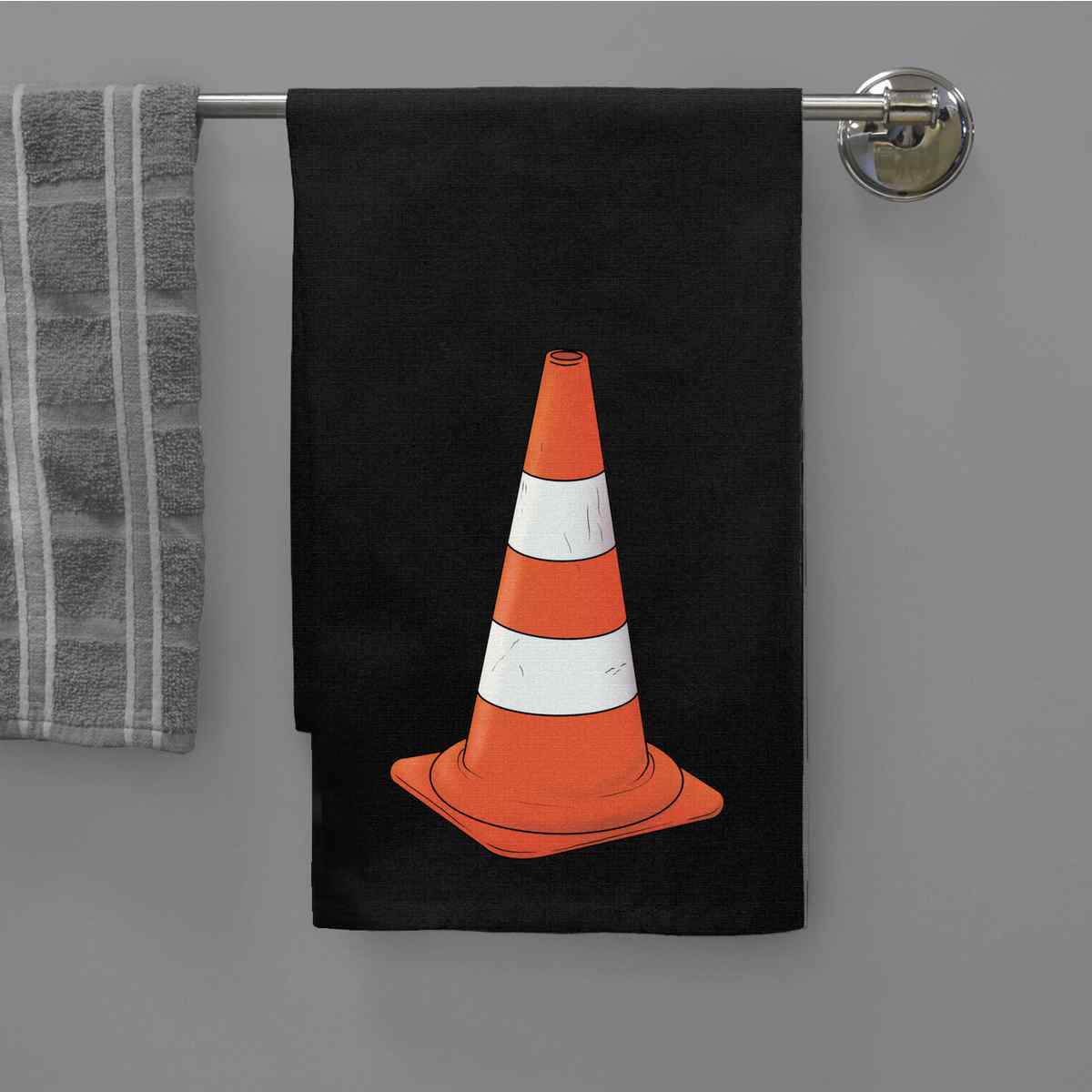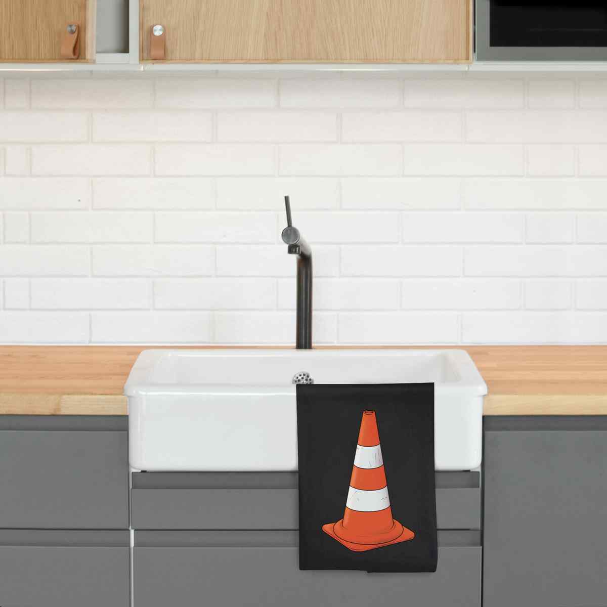 - Black cotton tea towel with hanging loop