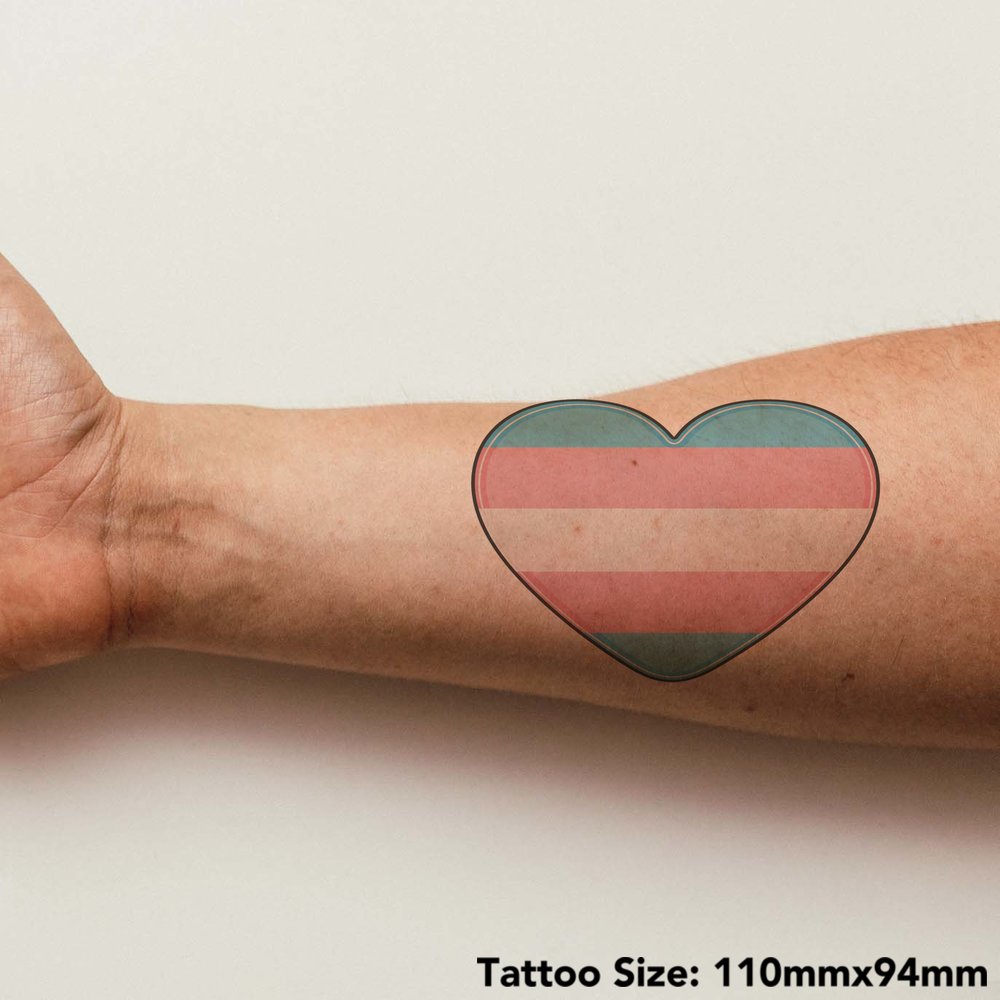 'Transgender Flag Heart' Temporary Tattoo - Water Resistant, Skin-Safe, Non-Toxic Transfer (TO00050744)