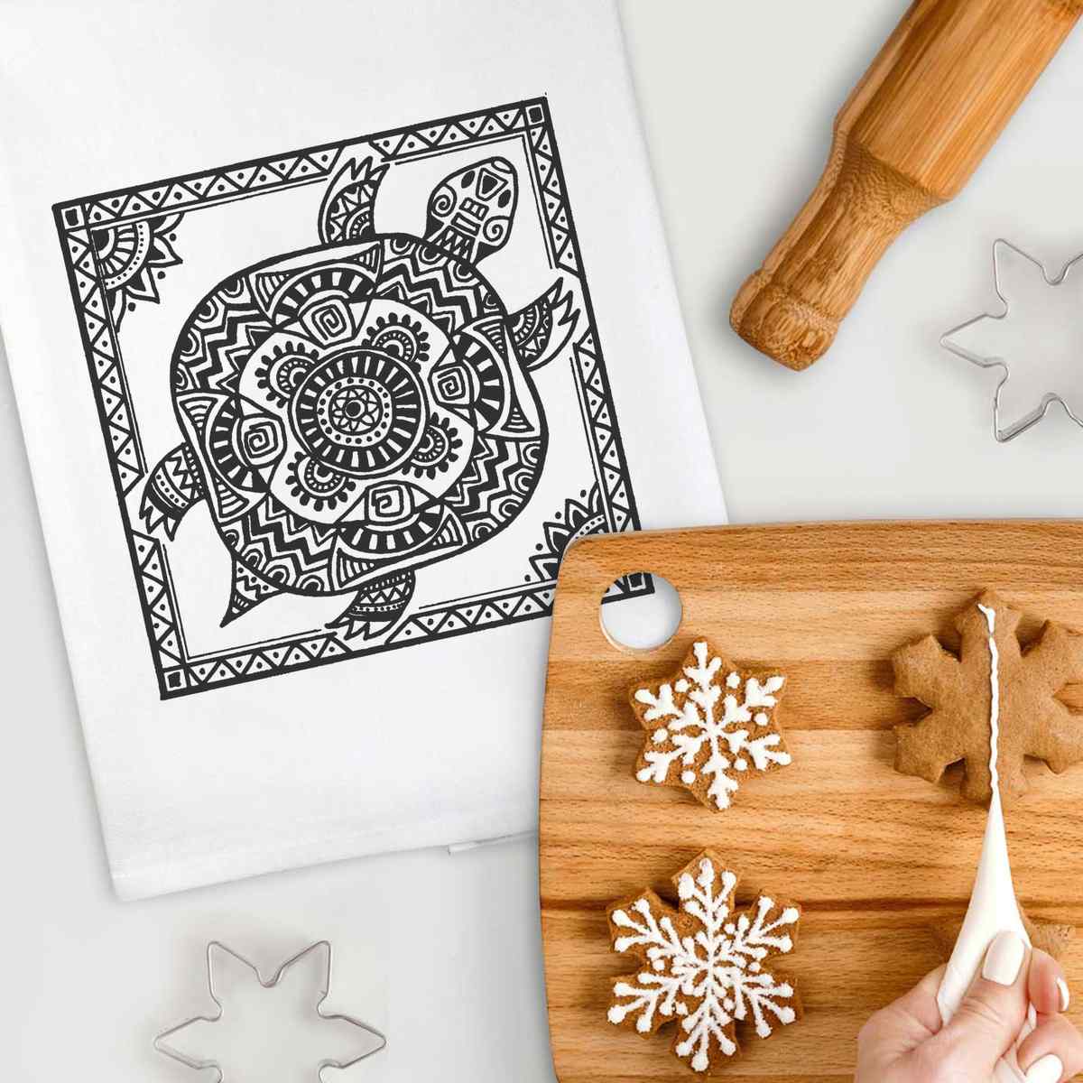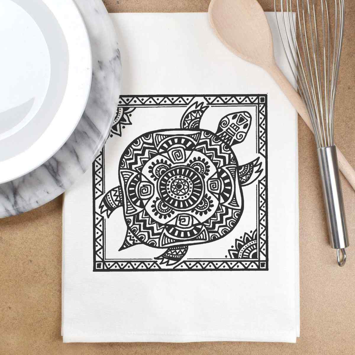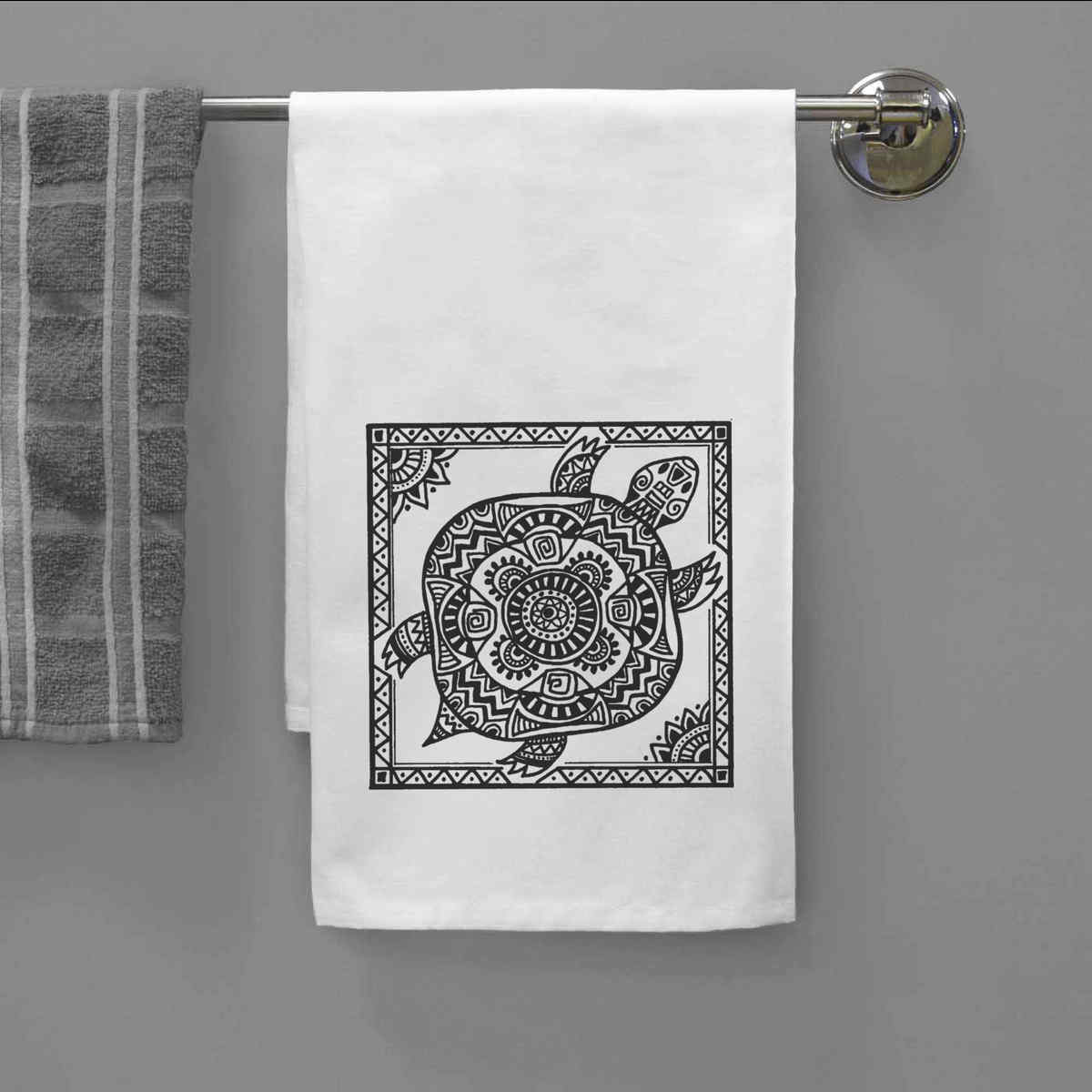 'Tribal Turtle' Cotton Tea Towel / Dish Cloth (TW016582)