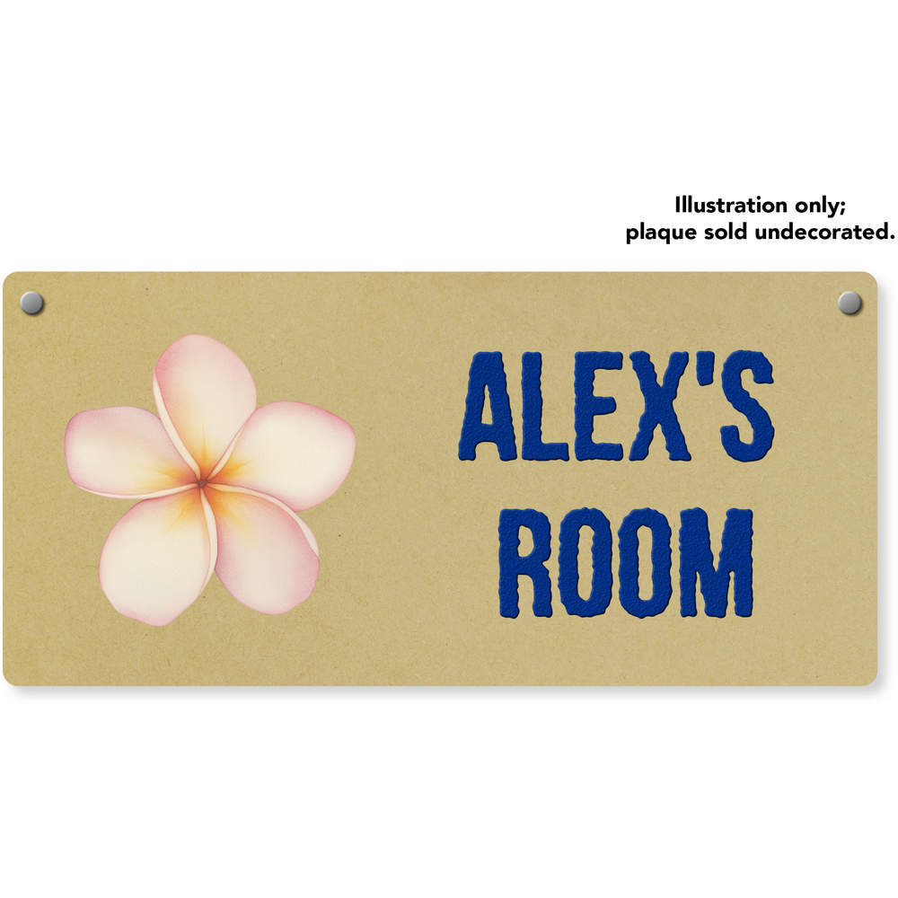 The plaques are made from a slim 3mm MDF - making them durable, but also very light. They have two holes, one in each of the top corners, and can either be screwed in place or have rope threaded through them to hang them. Neither screws nor rope are included with the plaque.