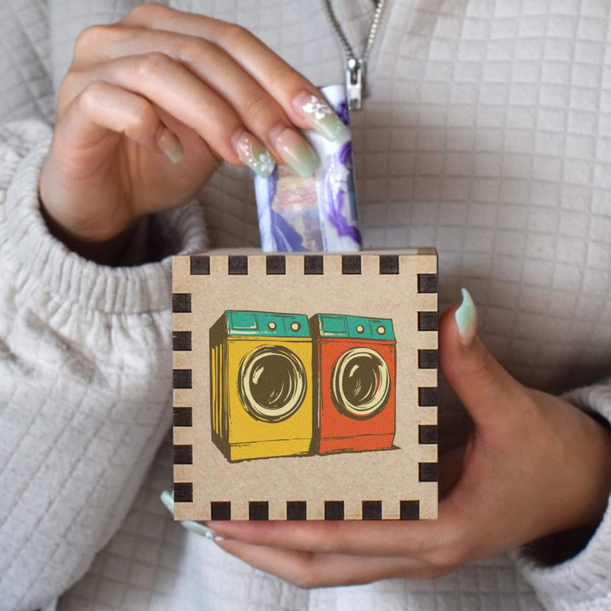 An 8.5cm wooden money box made out of the finest quality MDF and printed on all four sides with a unique design. The bottom is flat and the top has a slot for coins, the box itself is 85mm on each side, with a 35mm x 5mm coin slot, so please be sure it's suitable for you.