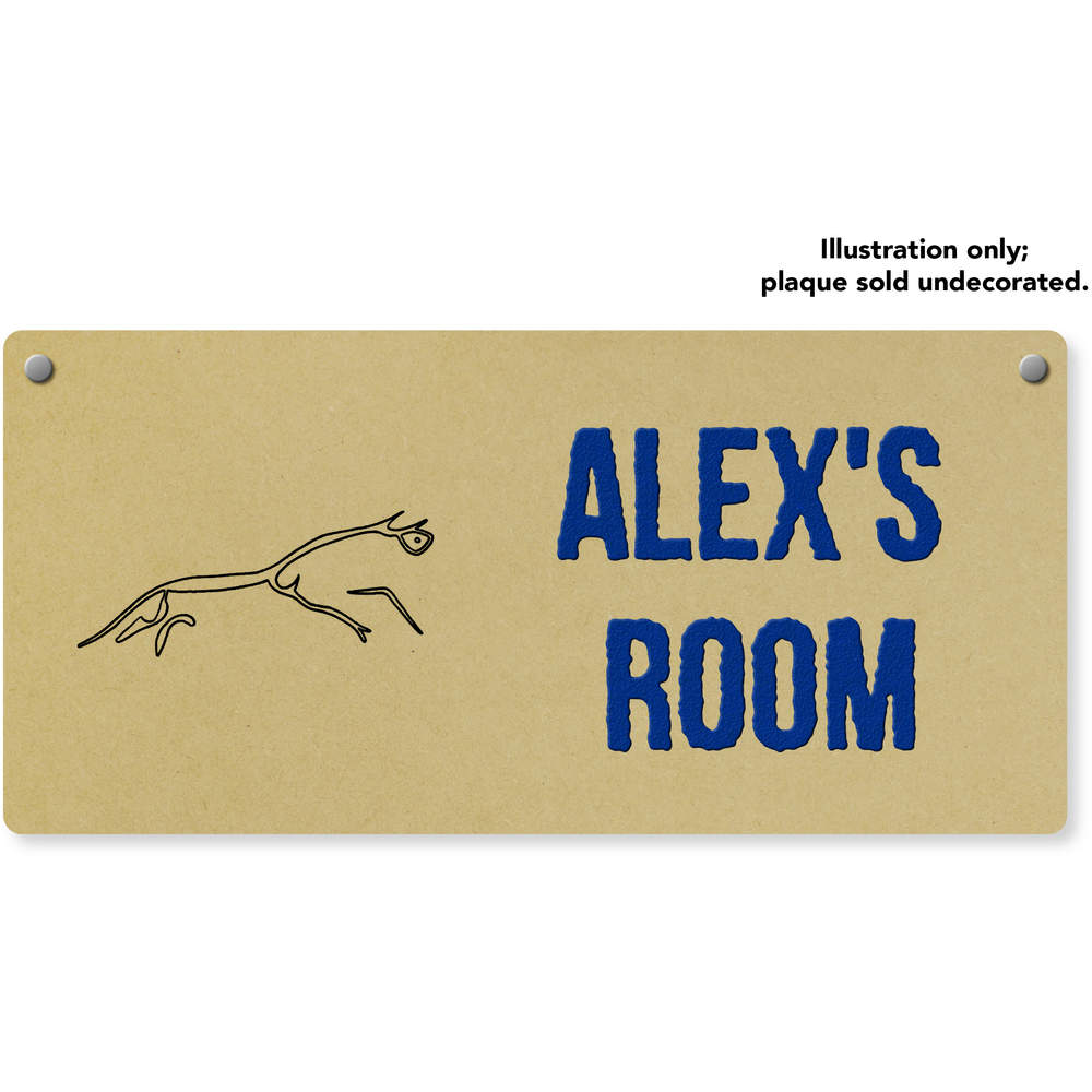 The plaques are made from a slim 3mm MDF - making them durable, but also very light. They have two holes, one in each of the top corners, and can either be screwed in place or have rope threaded through them to hang them. Neither screws nor rope are included with the plaque.