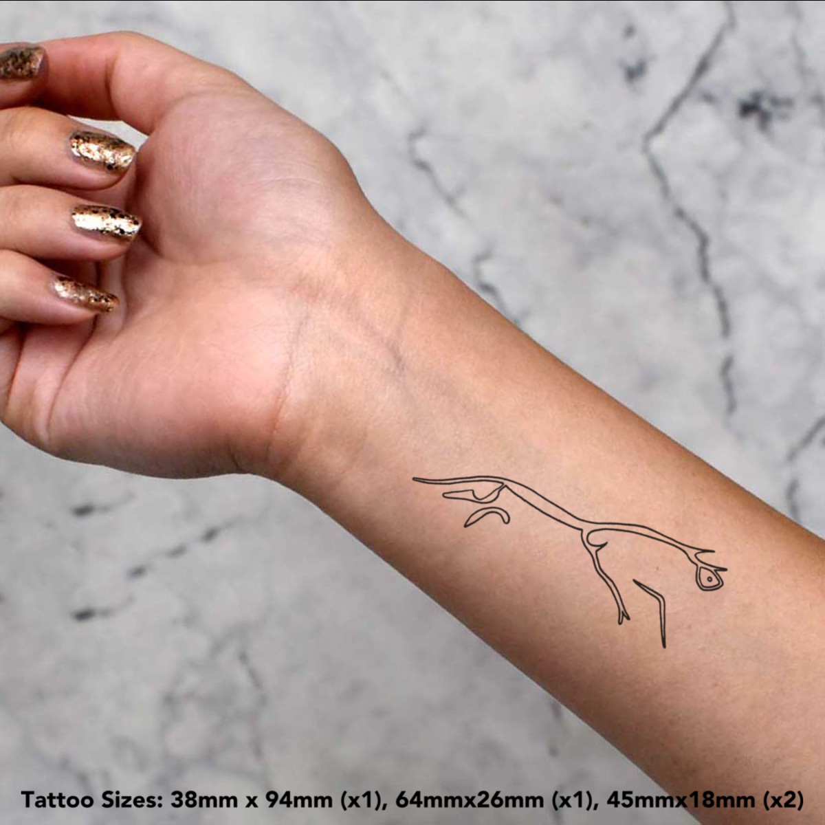 This pack of four temporary tattoos is a simple and creative way to add some personality to your look — no needles, no commitment. Perfect for parties, events, or everyday fun, each tattoo is made from skin-safe, non-toxic materials and is easy to apply.The waterproof finish helps them stay put through daily activities, while the mixed sizes makes them ideal for use on wrists, ankles, hands, and more. When you're ready for a change, the tattoo can be removed easily with baby oil or alcohol.
