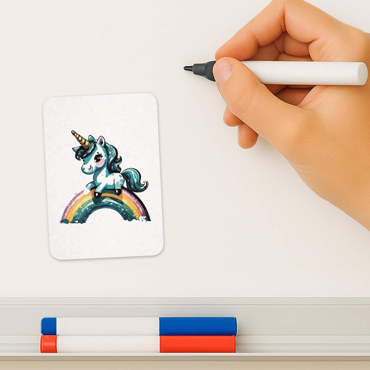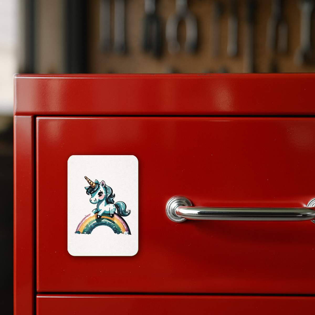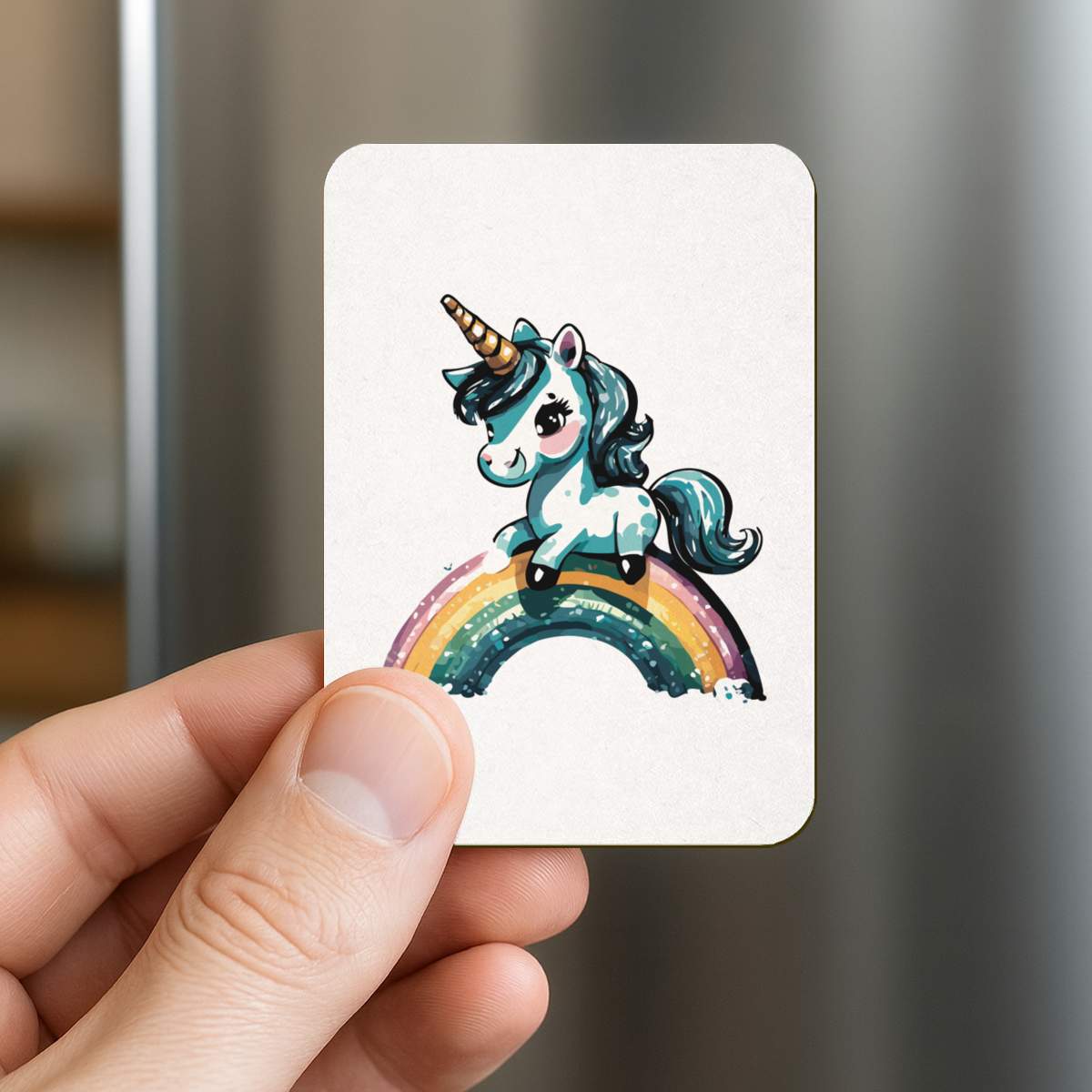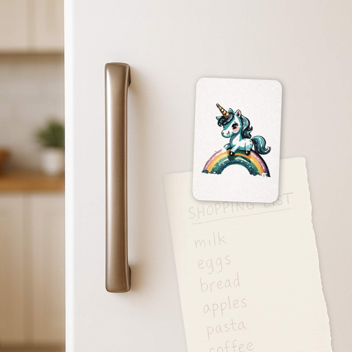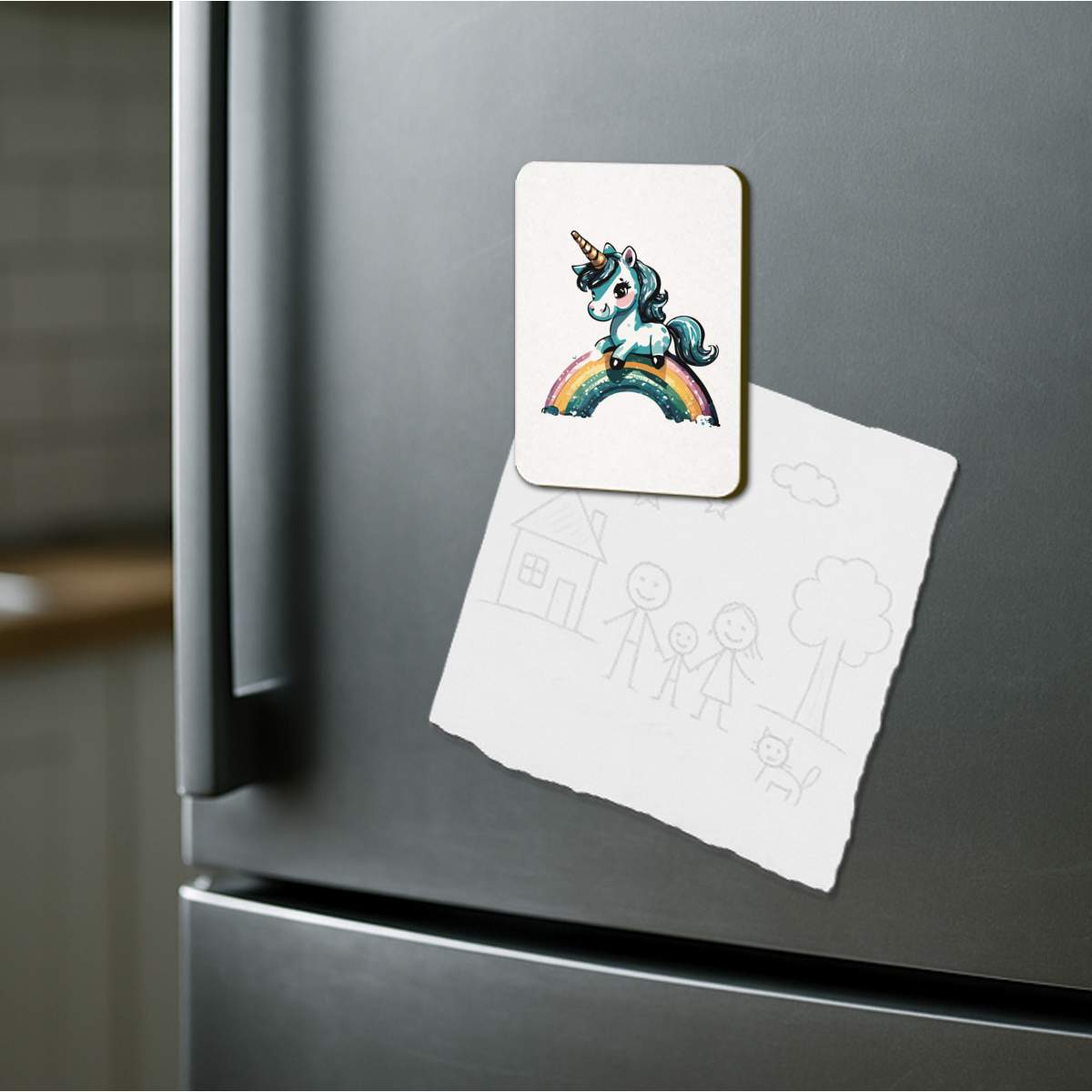 'Unicorn And Rainbow ' Rectangular Fridge Magnet - Decorative Refrigerator & Whiteboard Magnet for Home, Kitchen or Office - 70mm x 49mm (FM00053048)