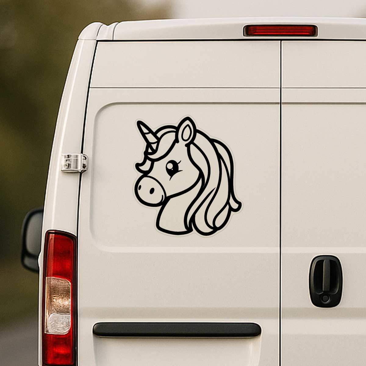 'Unicorn Head' Clear Premium Vinyl Decal Stickers – Waterproof, Durable & Easy to Apply - For Car Bumpers, Windows, Bins & More - XL (460mm) (DC00130655)