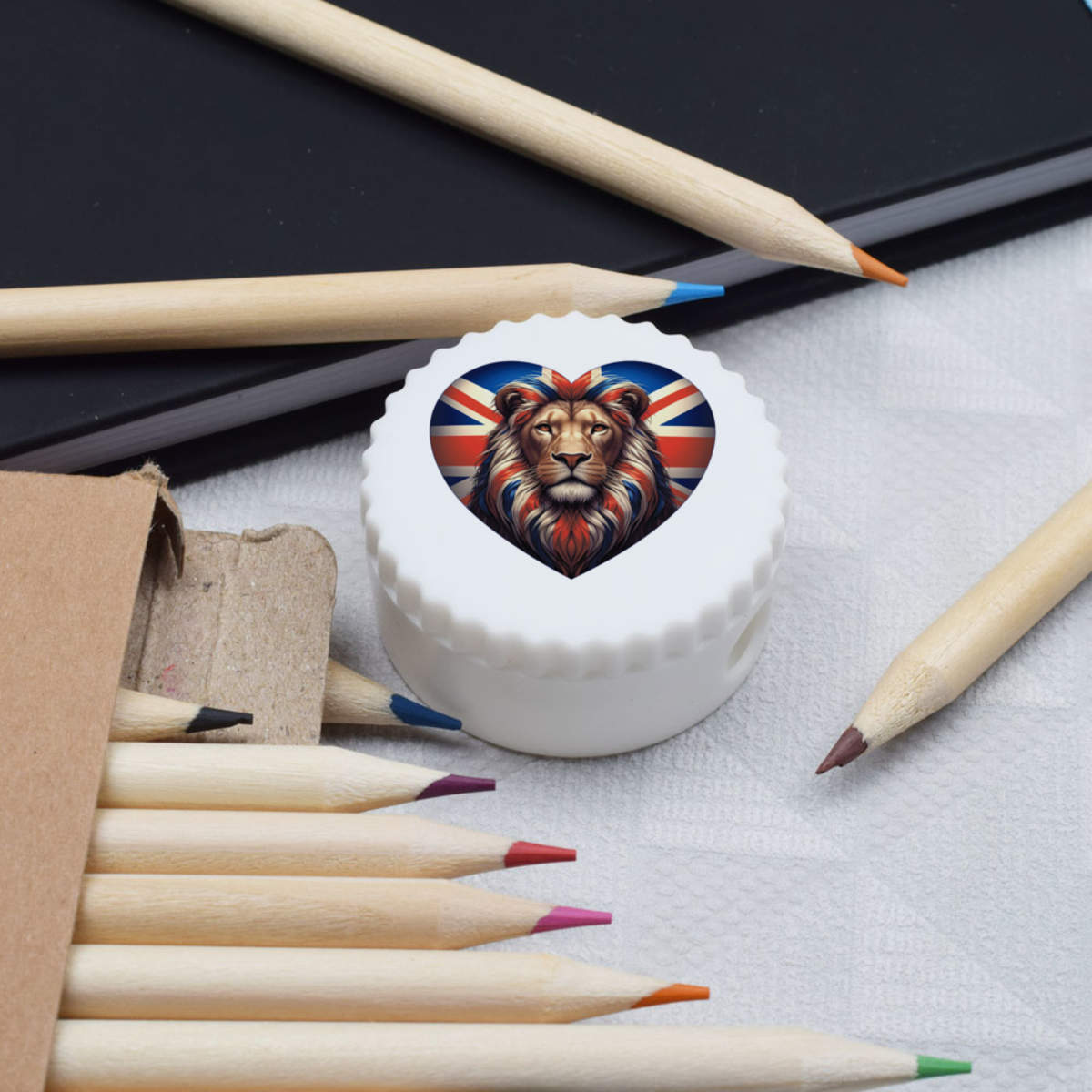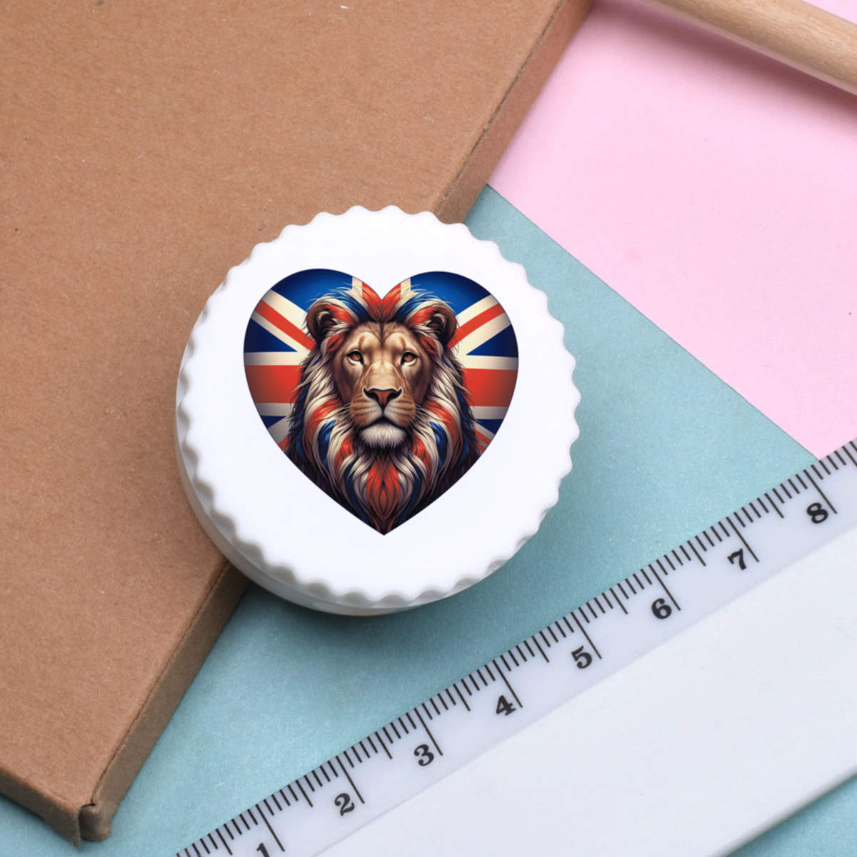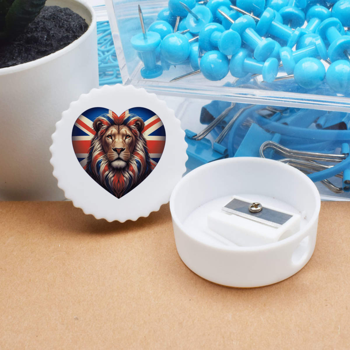 'Union Jack Heart With Lion' Compact Pencil Sharpener (PS00050653)