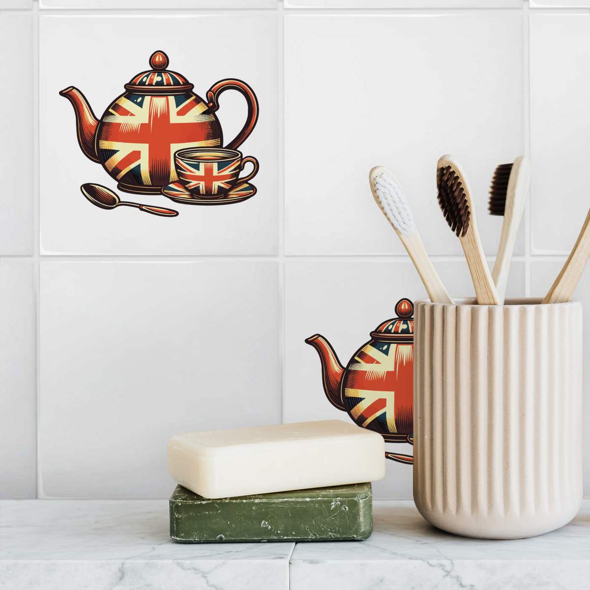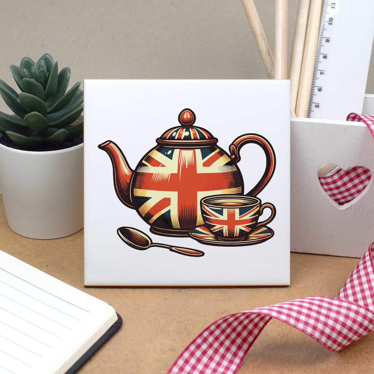 'Union Jack Teapot' 108mm Square Ceramic Tile (TD00030726)