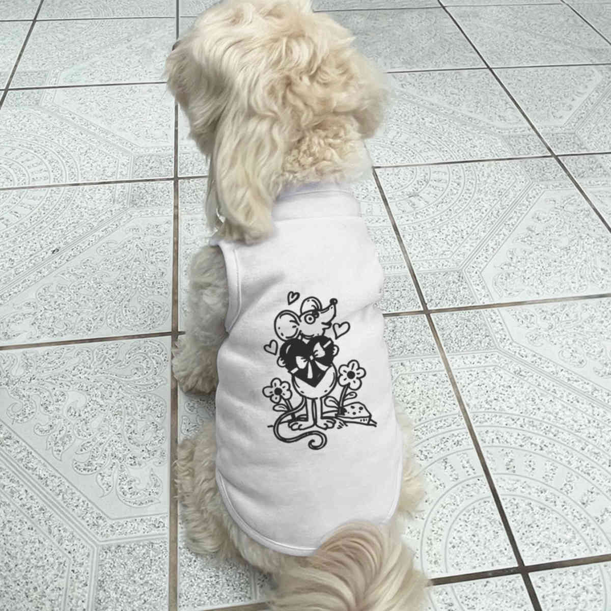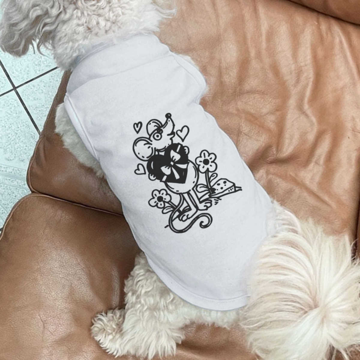 Give your furry friend a fresh new look with this adorable white dog T-shirt, designed to turn heads with its unique print on the back! Made from 100% polyester, it offers a comfortable yet firm stretch, perfect for both playtime adventures and cozy cuddles. Whether your dog loves to play outdoors or cuddle indoors, this T-shirt provides all-day comfort and style.