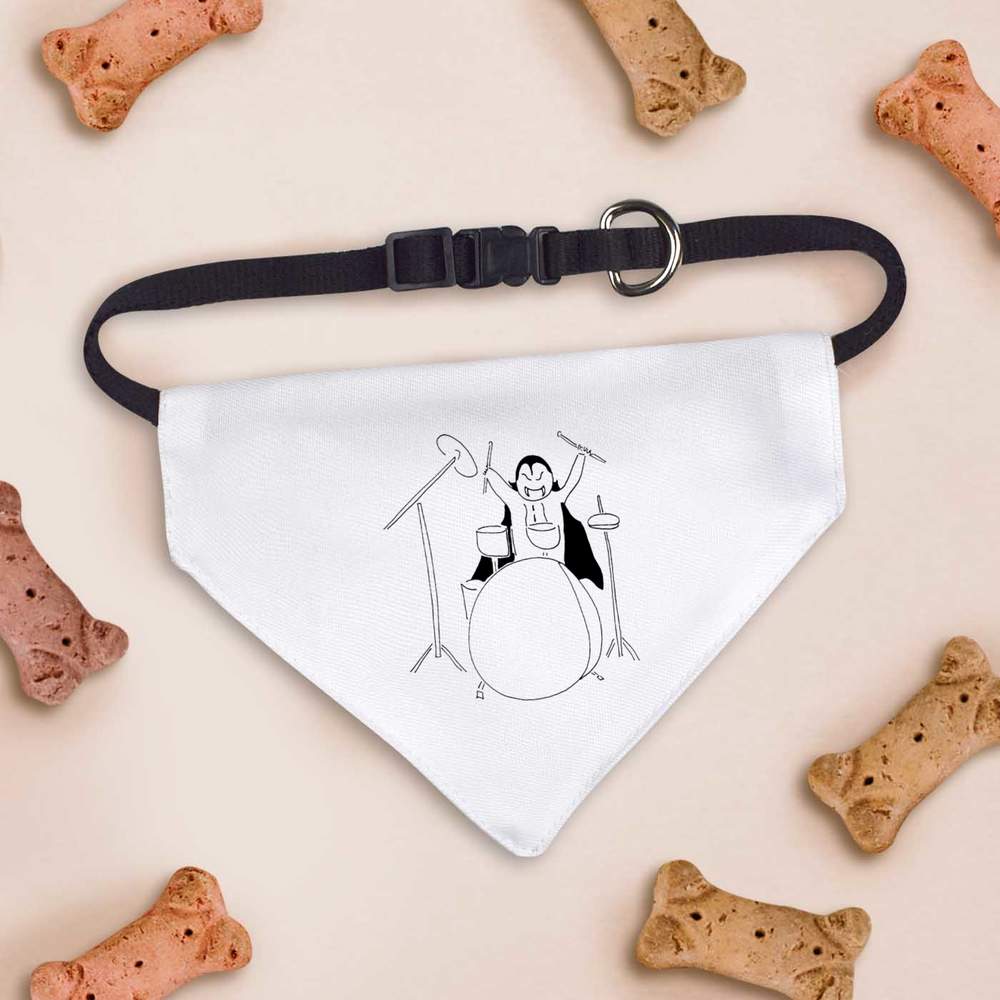 Make your four-legged friend the most fashionable pet around! This pet bandana is printed on one side with an awesome design created by one of our talented artists.