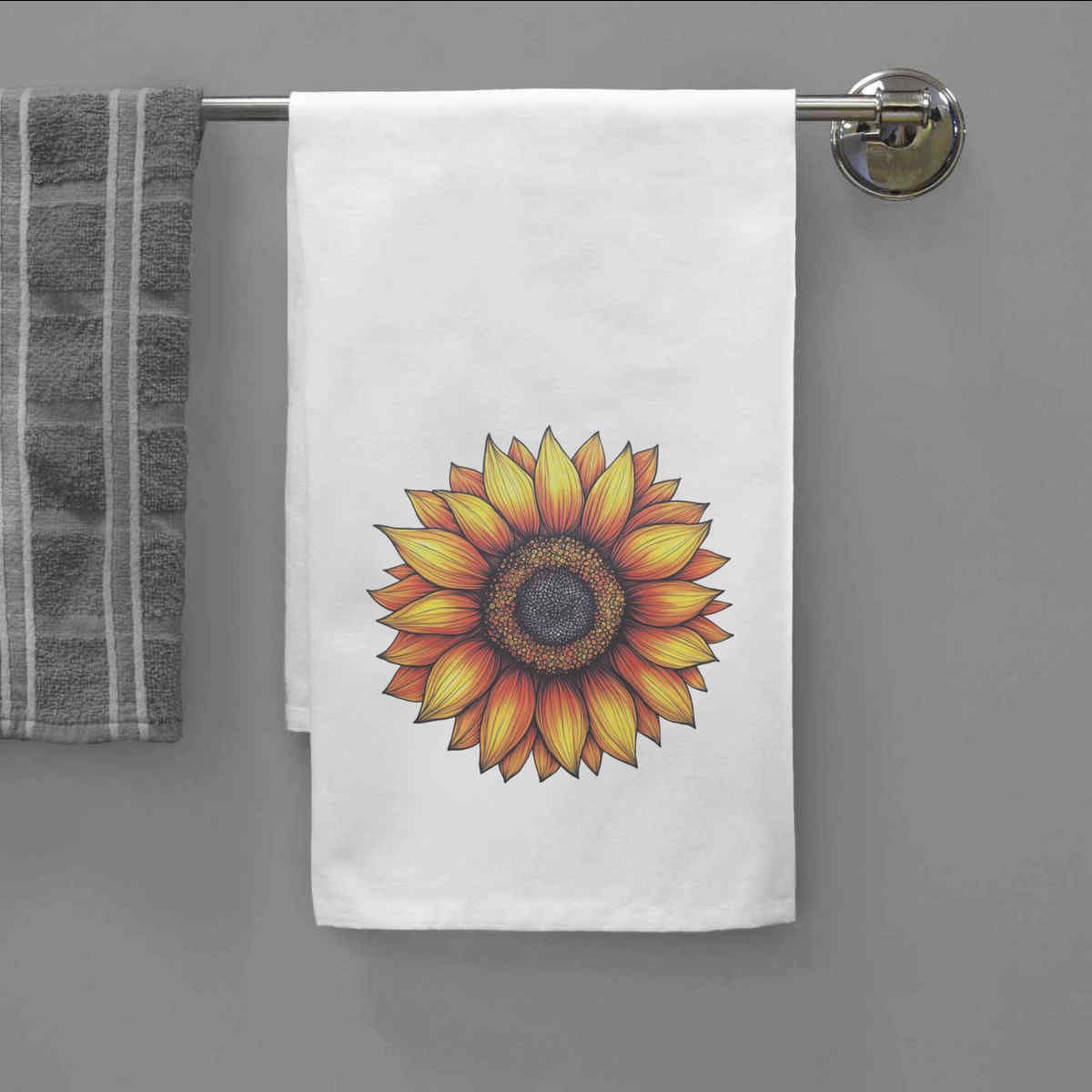 - White cotton tea towel with hanging loop