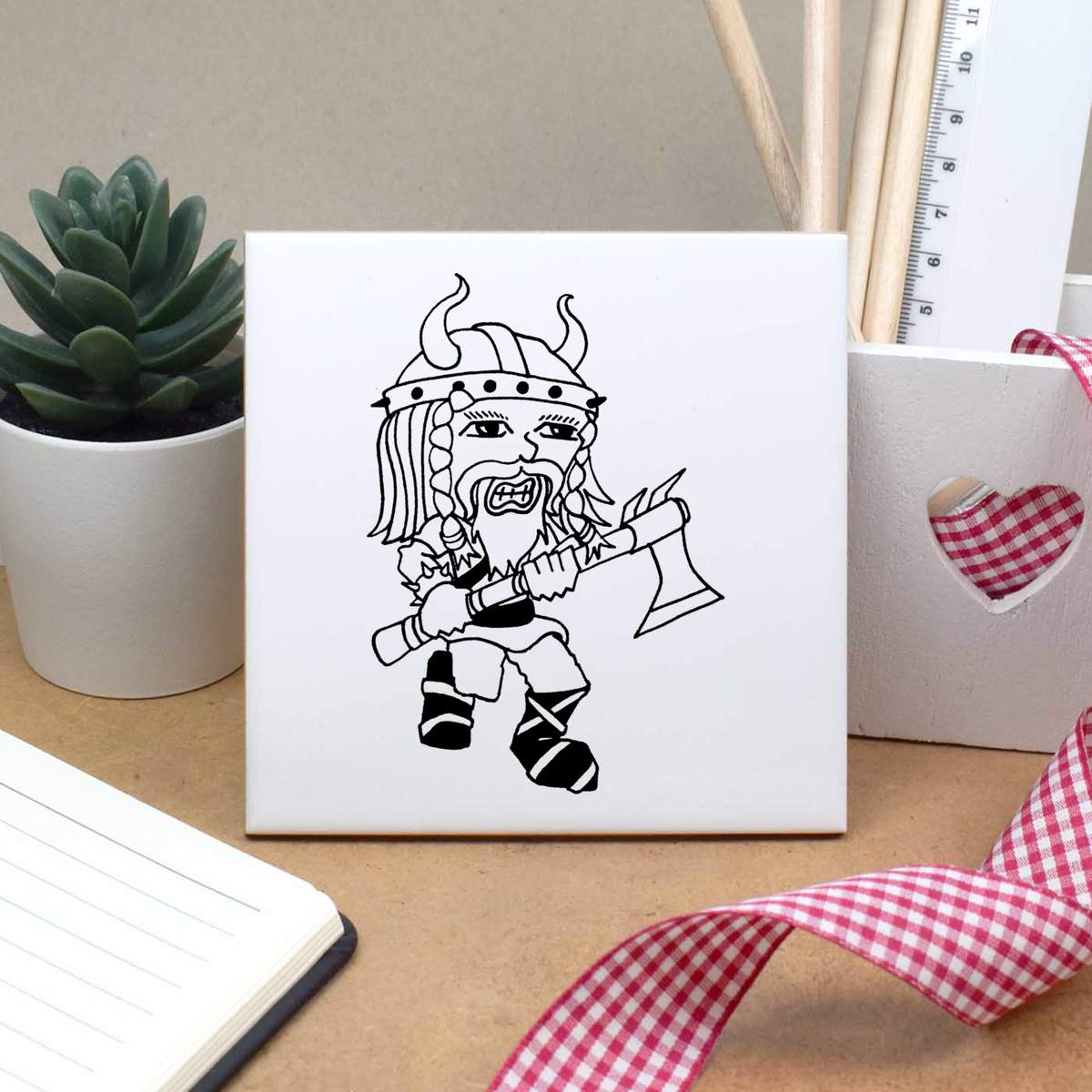 'Viking With Axe' 108mm Square Ceramic Tile (TD00000605)