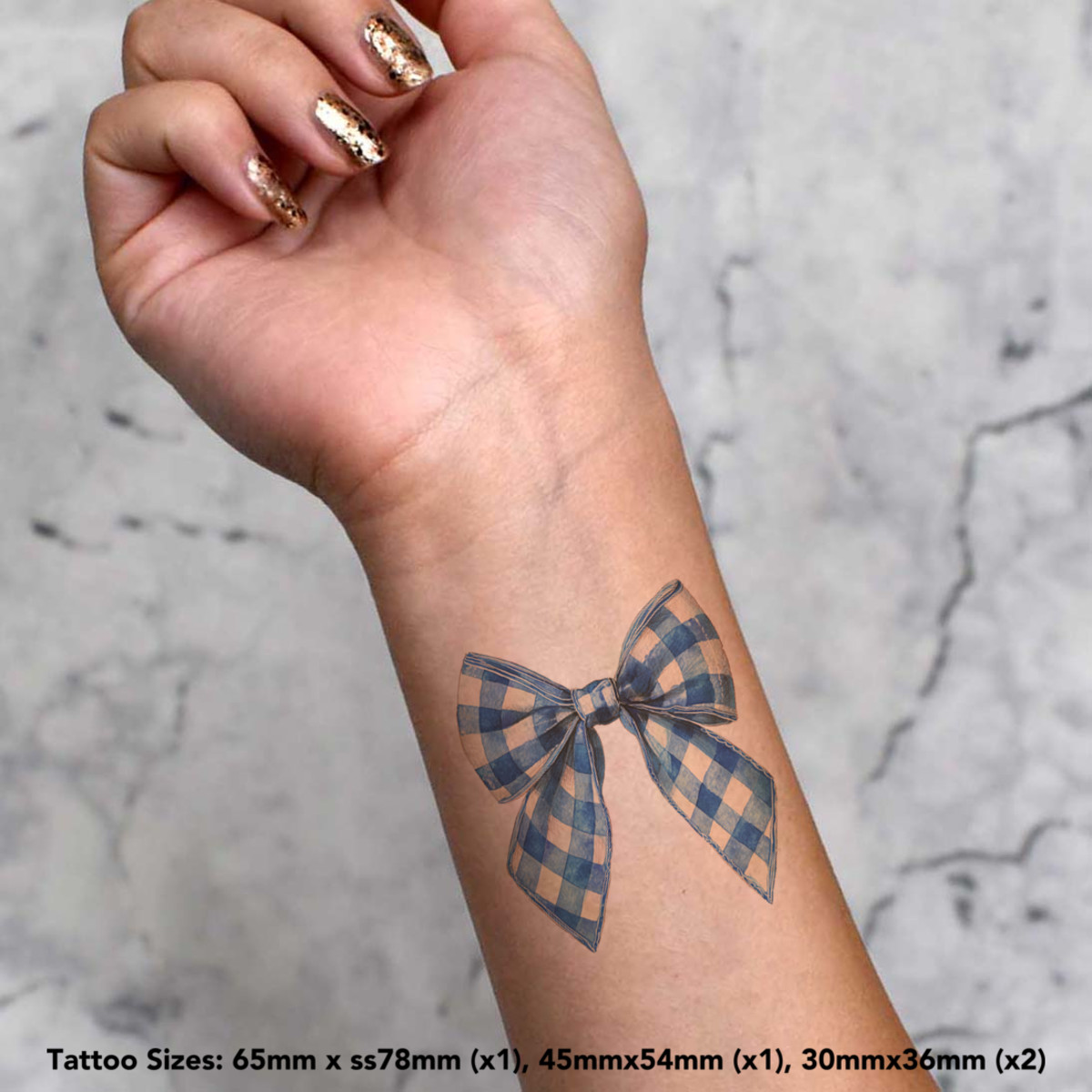 'Vintage Checkered Bow' Temporary Tattoos - Water Resistant, Skin-Safe, Non-Toxic Transfers (TO057324)