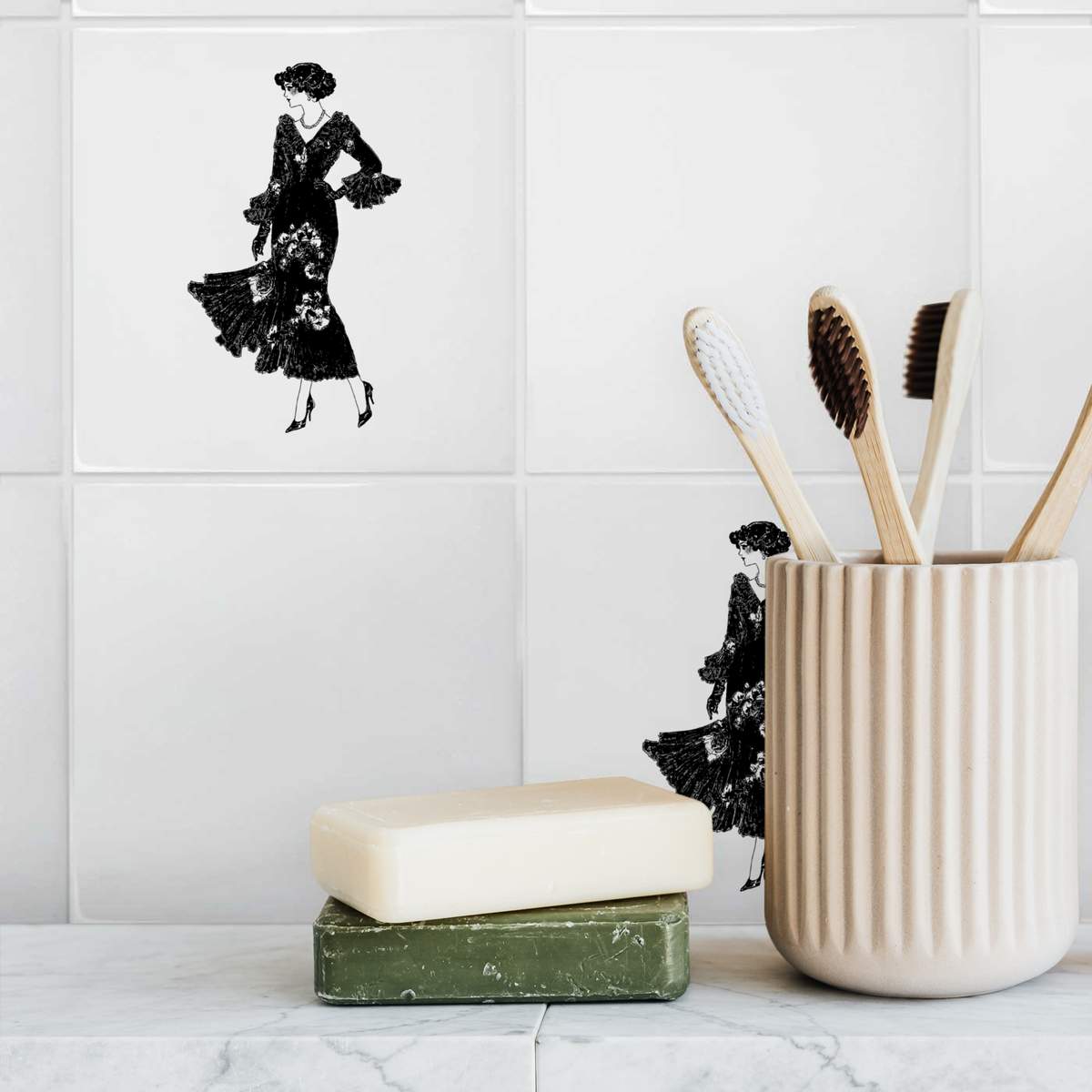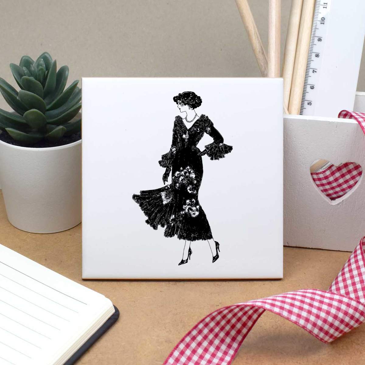 'Vintage Fashion Model with Long Dress' 108mm Square Ceramic Tile (TD00034511)