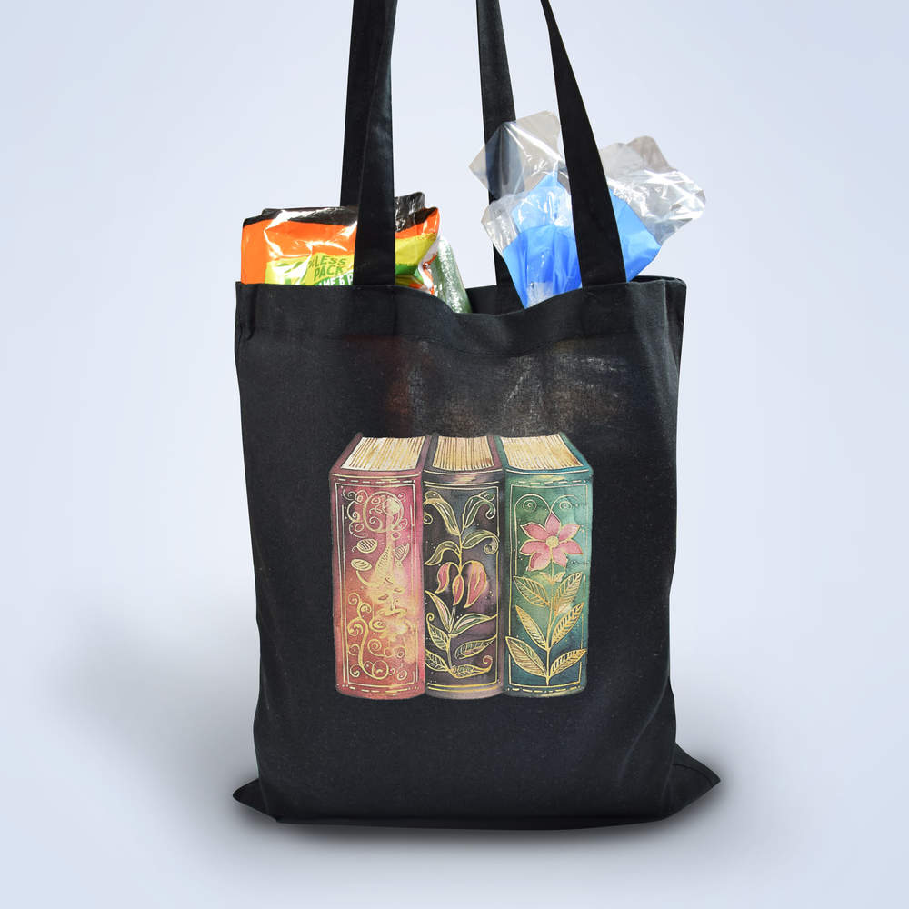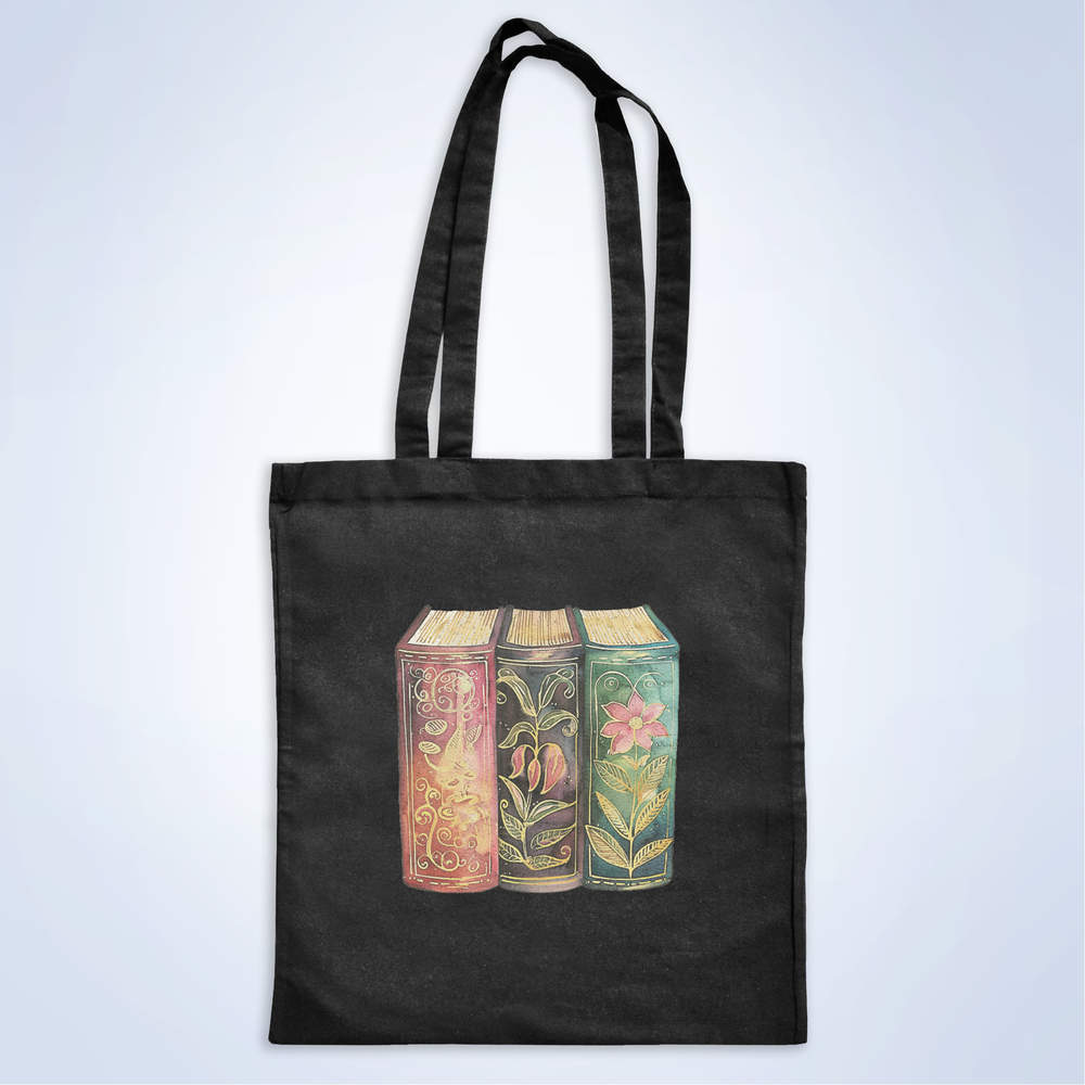 'Vintage Floral Books' Classic Black Tote Shopper Bag (ZB00027076)