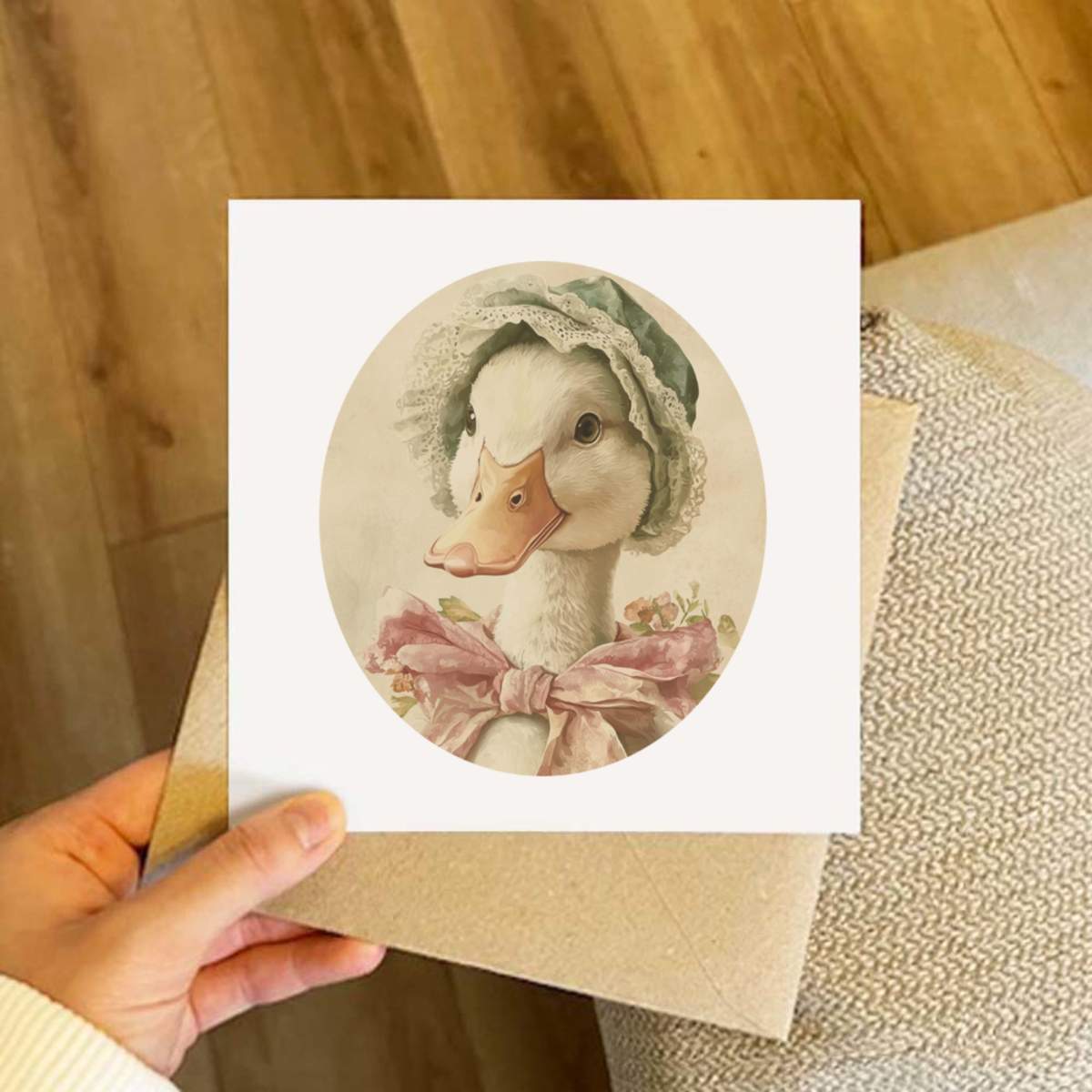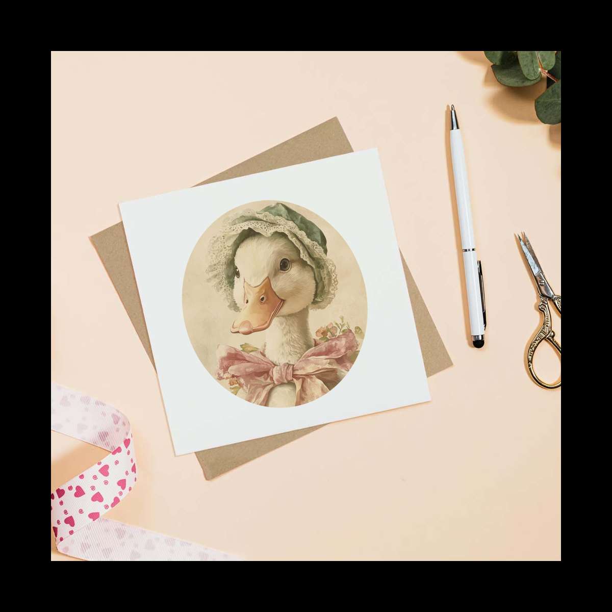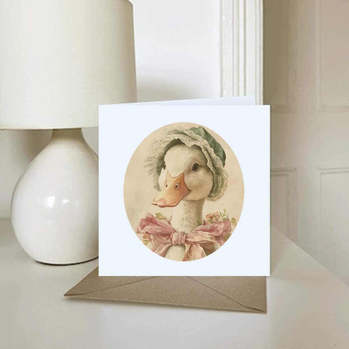 - Square greeting card supplied with a recycled brown envelope