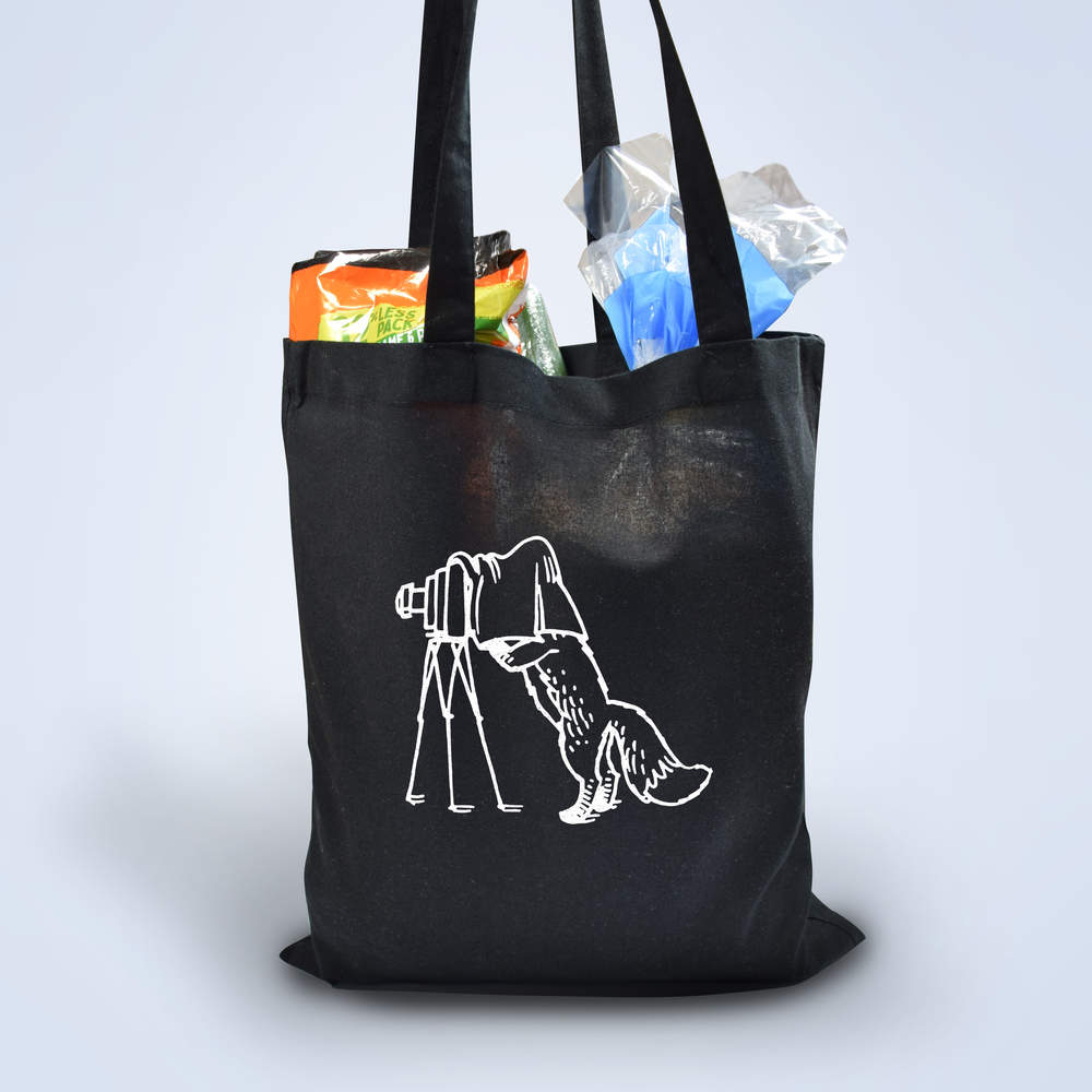 'Vintage Photographer Fox' Classic Black Tote Shopper Bag (ZB00010099)