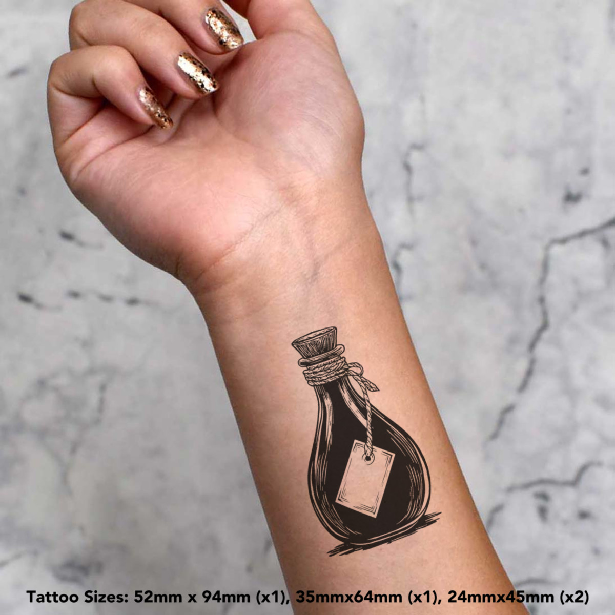 'Vintage Potion Bottle with Tag ' Temporary Tattoos - Water Resistant, Skin-Safe, Non-Toxic Transfers (TO052897)