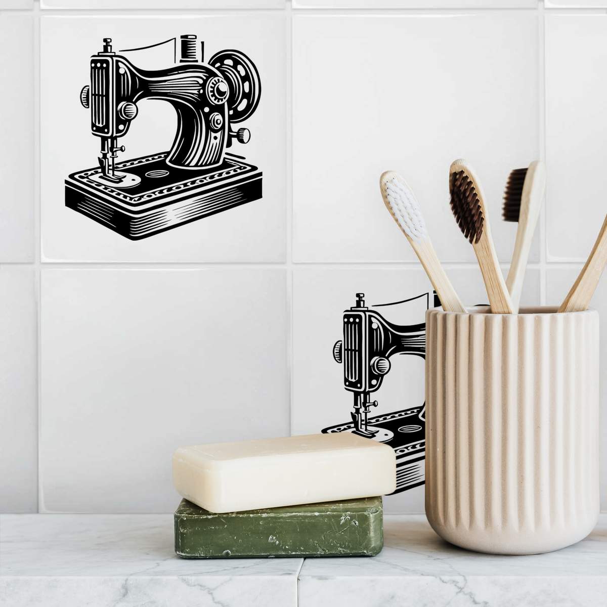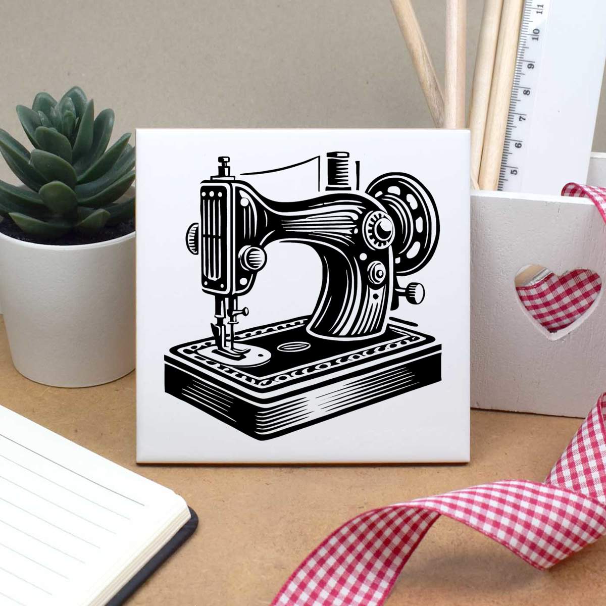 'Vintage Sewing Machine' 108mm Square Ceramic Tile (TD00032556)