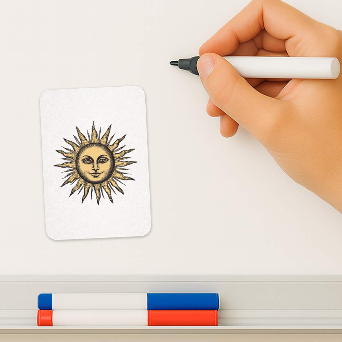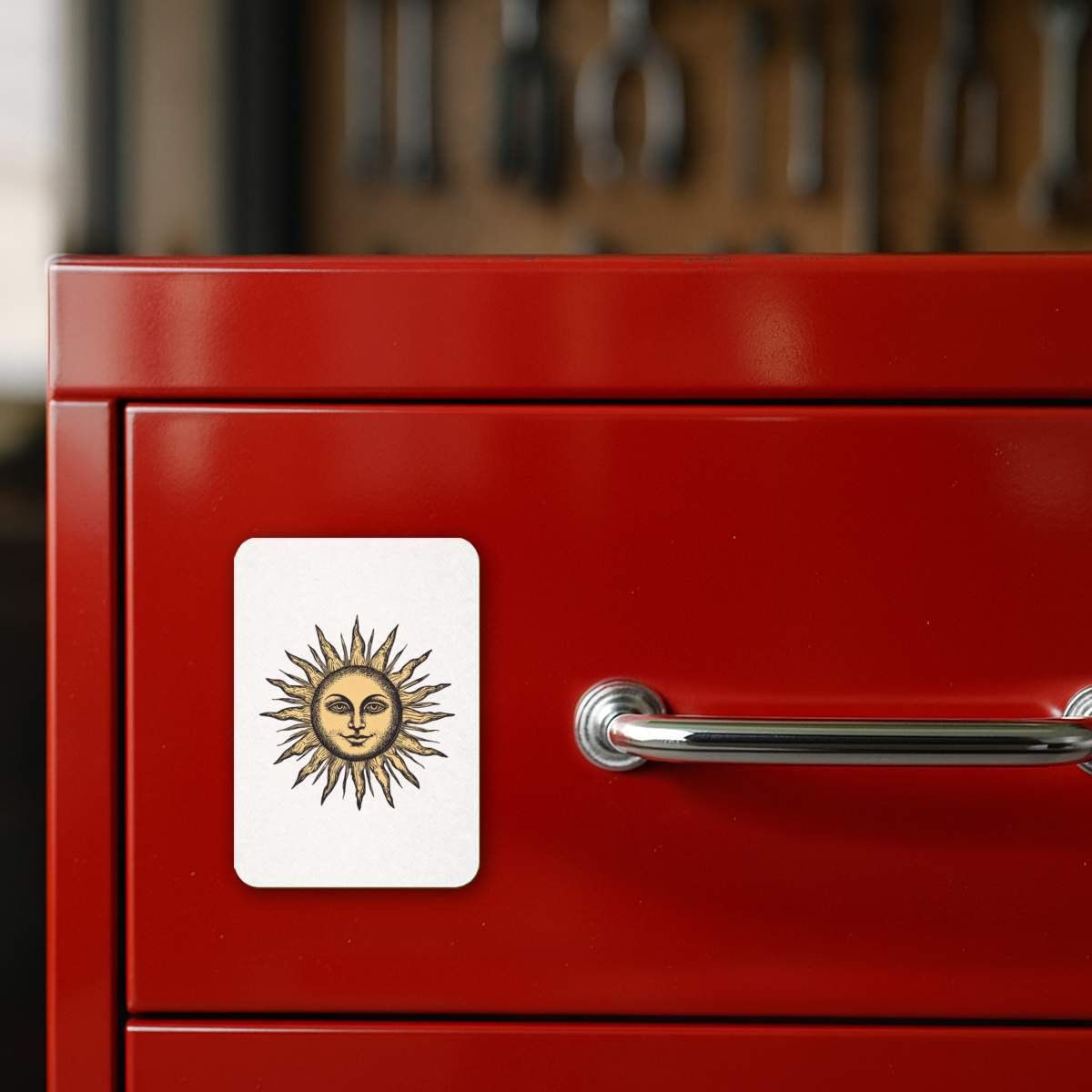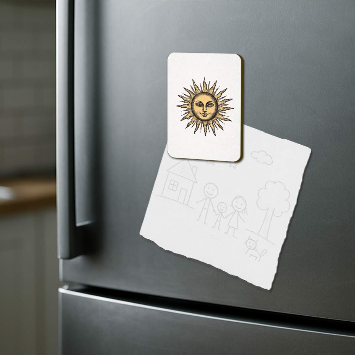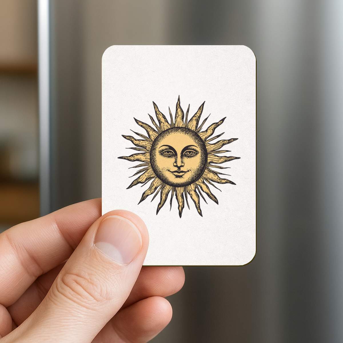 'Vintage Sun with Face' Rectangular Fridge Magnet - Decorative Refrigerator & Whiteboard Magnet for Home, Kitchen or Office - 70mm x 49mm (FM00057269)
