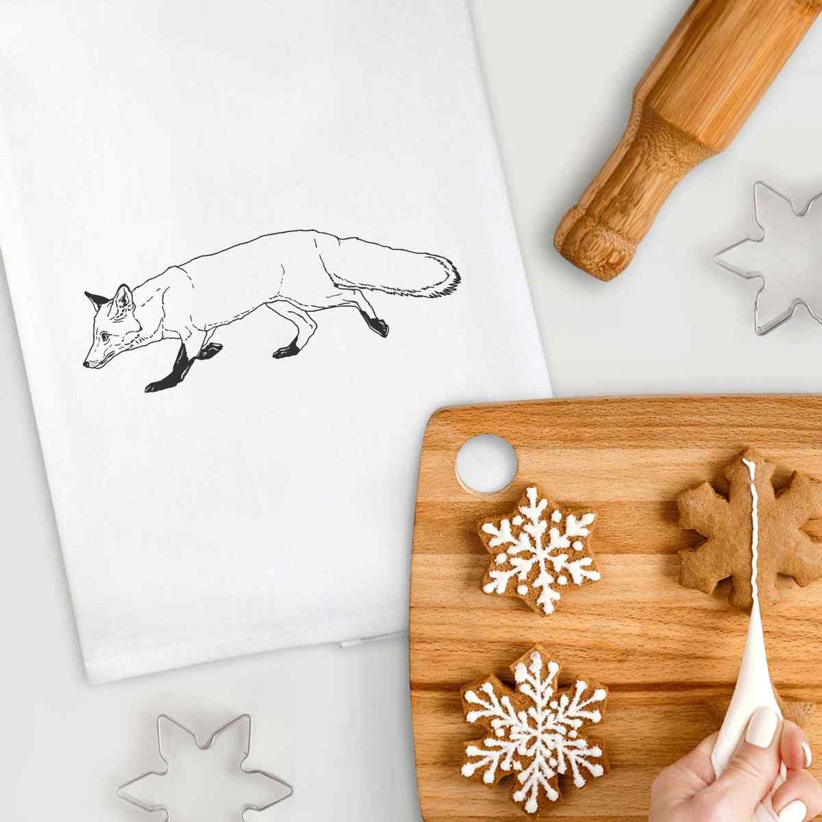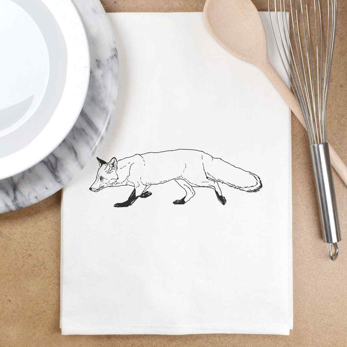 'Walking Fox' Cotton Tea Towel / Dish Cloth (TW028929)
