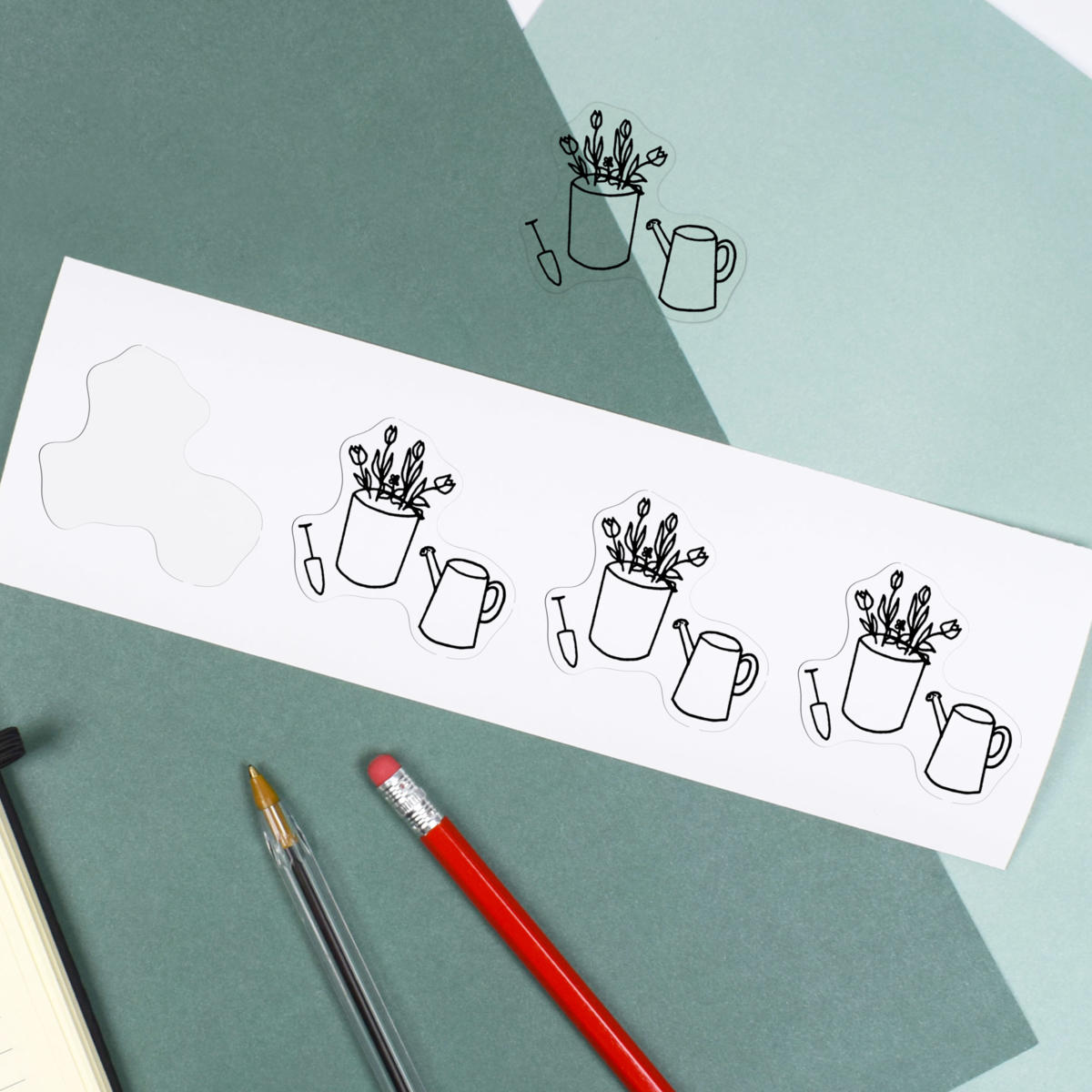 'Watering Can & Flowers' Clear Sticker Decals (DC037319)