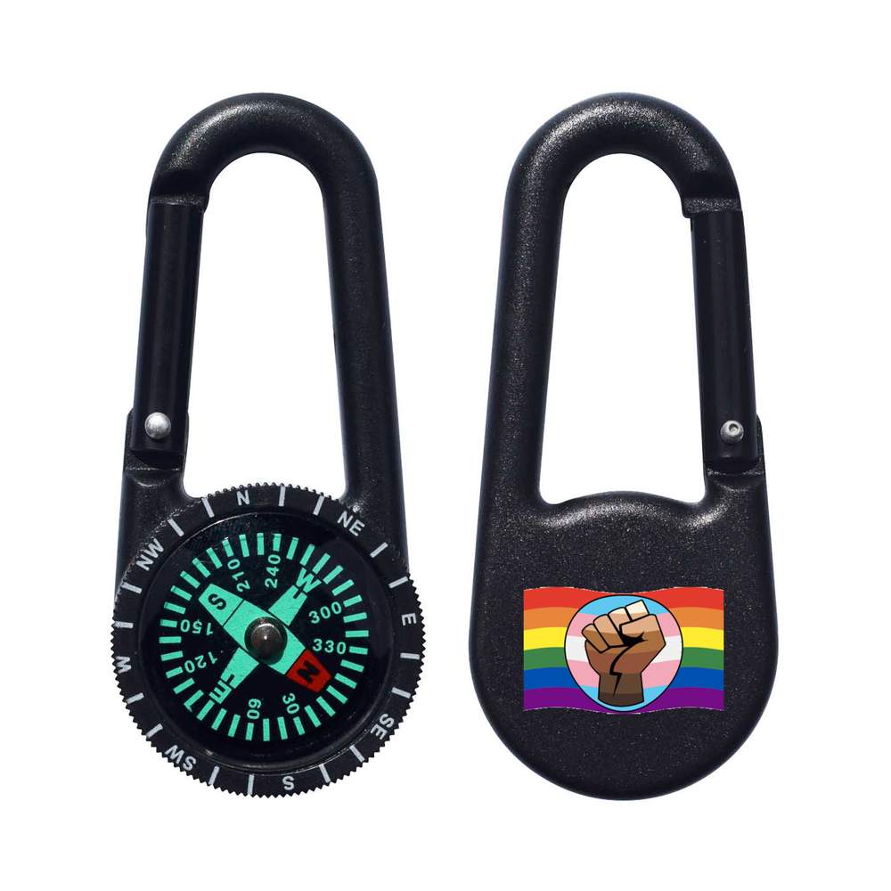 'Waving Rainbow QPOC and Trans Flag' Compass Keyring (KC00035189)