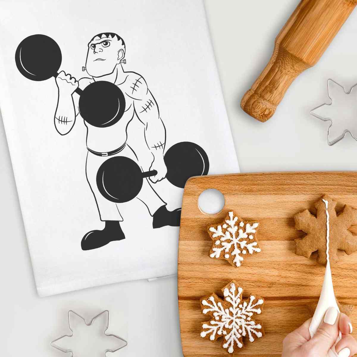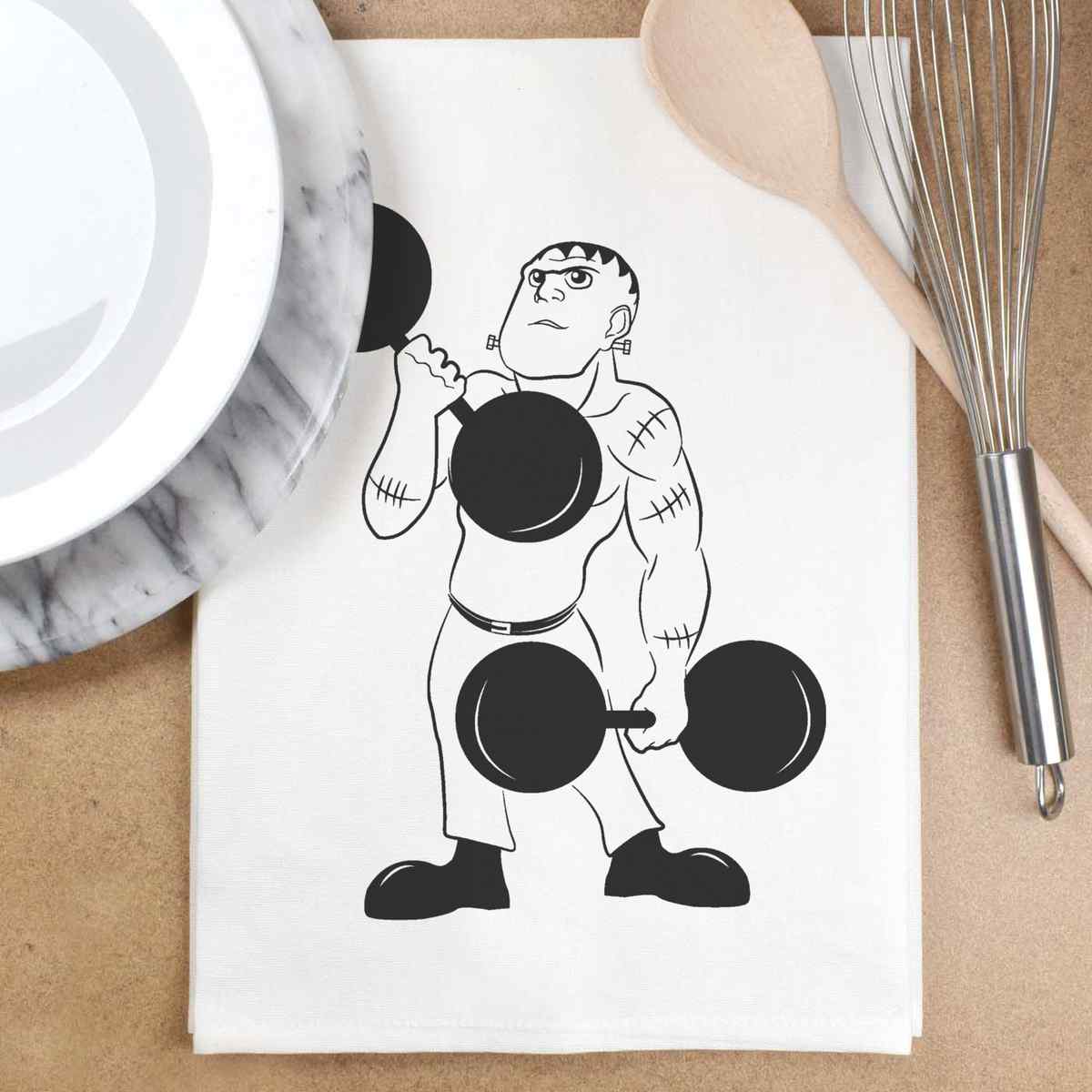 'Weightlifting Frankenstein' Cotton Tea Towel / Dish Cloth (TW004246)