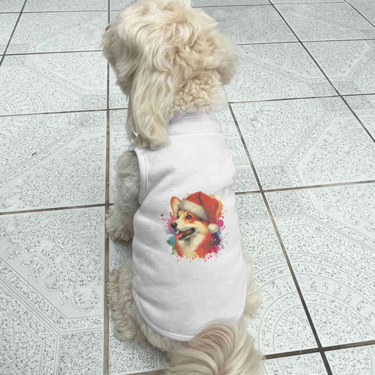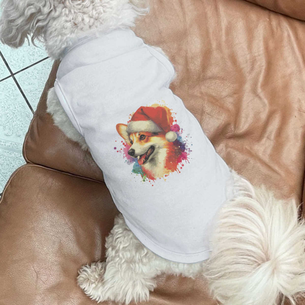 'Illustration of a Welsh Corgi Wearing a Santa Hat'