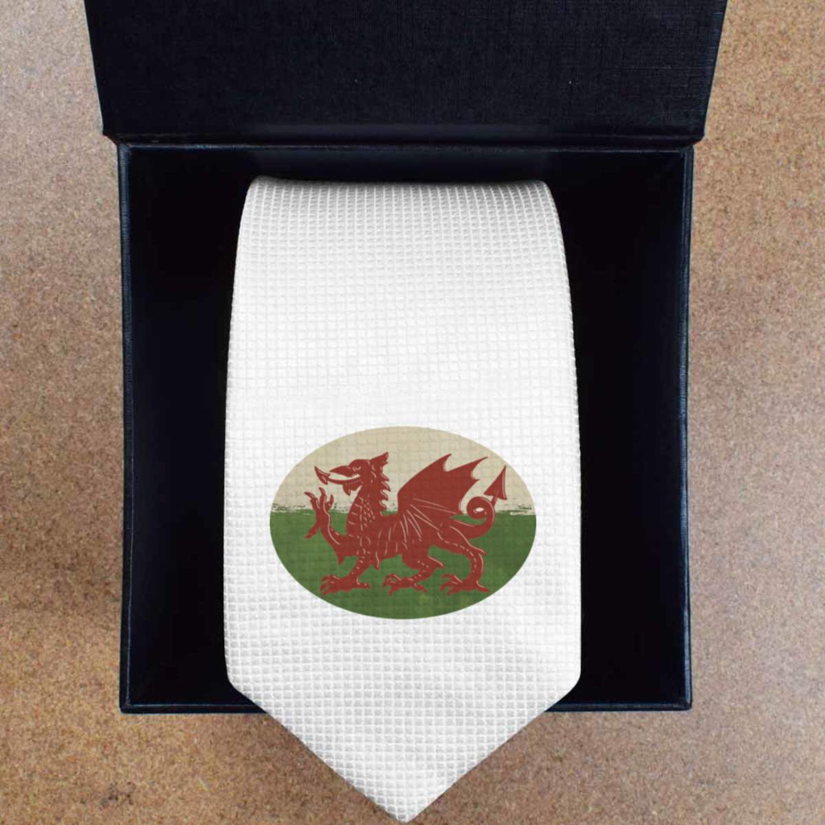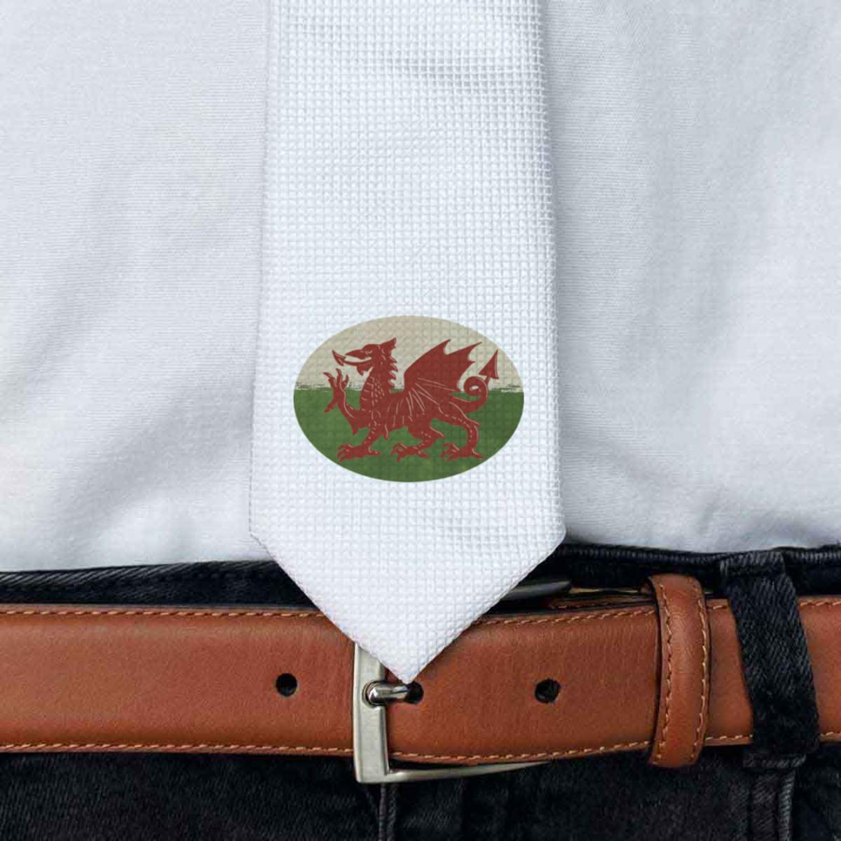 This stylish slim white tie is guaranteed to add class to any outfit. Printed on the front with a design from one of our talented designers, these ties are perfect for formal events, special occasions or making a statement at the office.