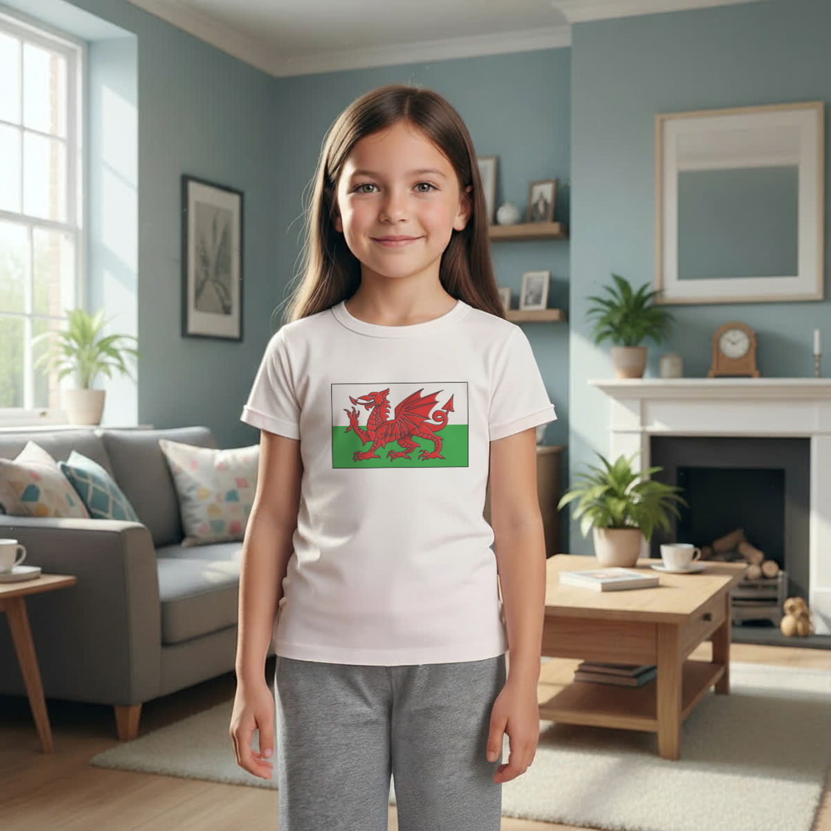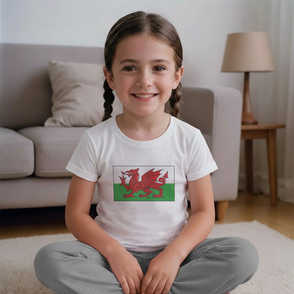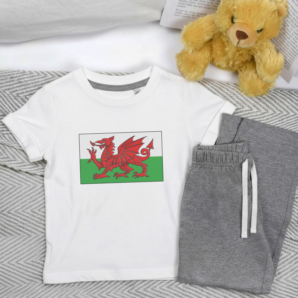 'Welsh Flag' Kids Cotton Pyjama Set – Comfortable Children's Nightwear, Sleepwear and Loungewear - Patriotic Cymru Banner Red Beast - Unisex for Boys and Girls - Grey, 5-6 Years (K