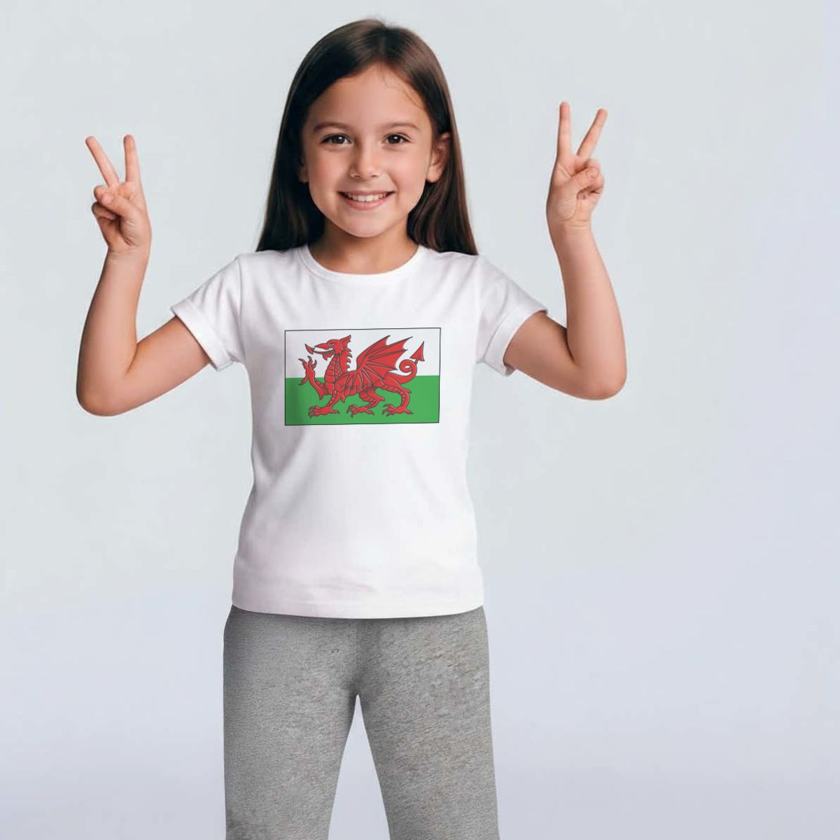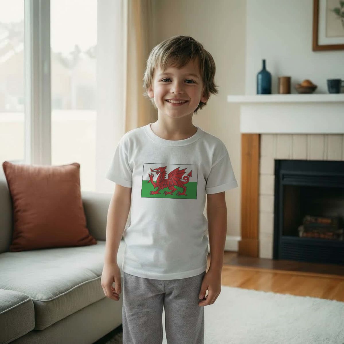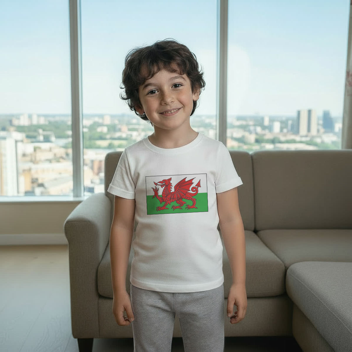 'Welsh Flag' Kids Cotton Pyjama Set – Comfortable Children's Nightwear, Sleepwear and Loungewear - Patriotic Cymru Banner Red Beast - Unisex for Boys and Girls - Grey, 5-6 Years (K