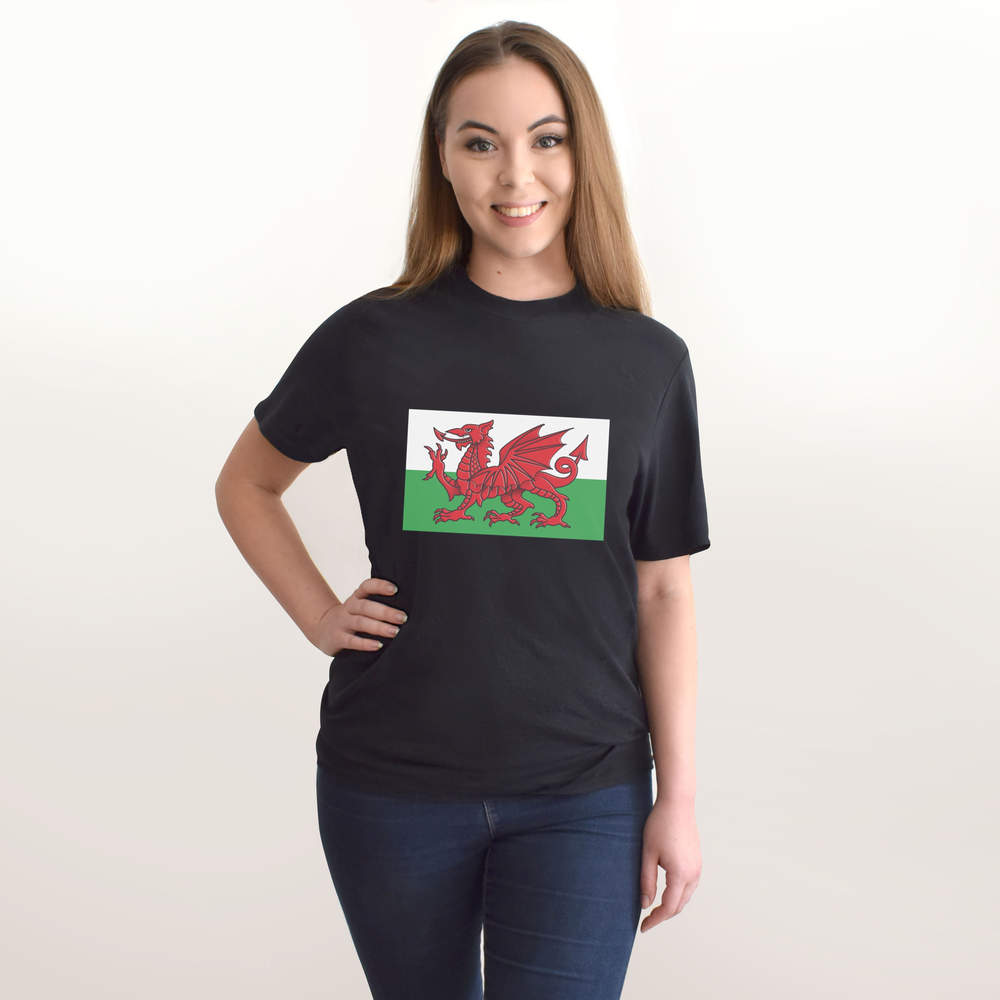 'Welsh Flag' Unisex T-Shirt - Patriotic Cymru Banner Red Beast - 100 % Cotton, Black, XXL (TA00239681)
