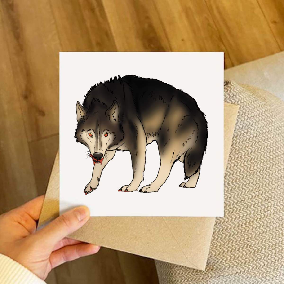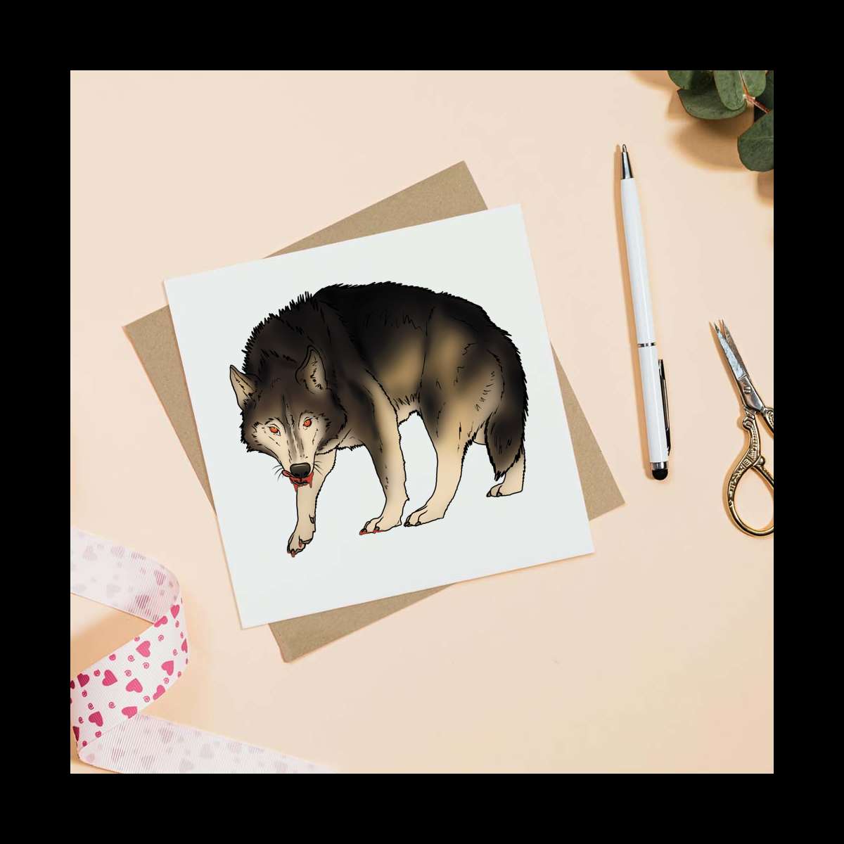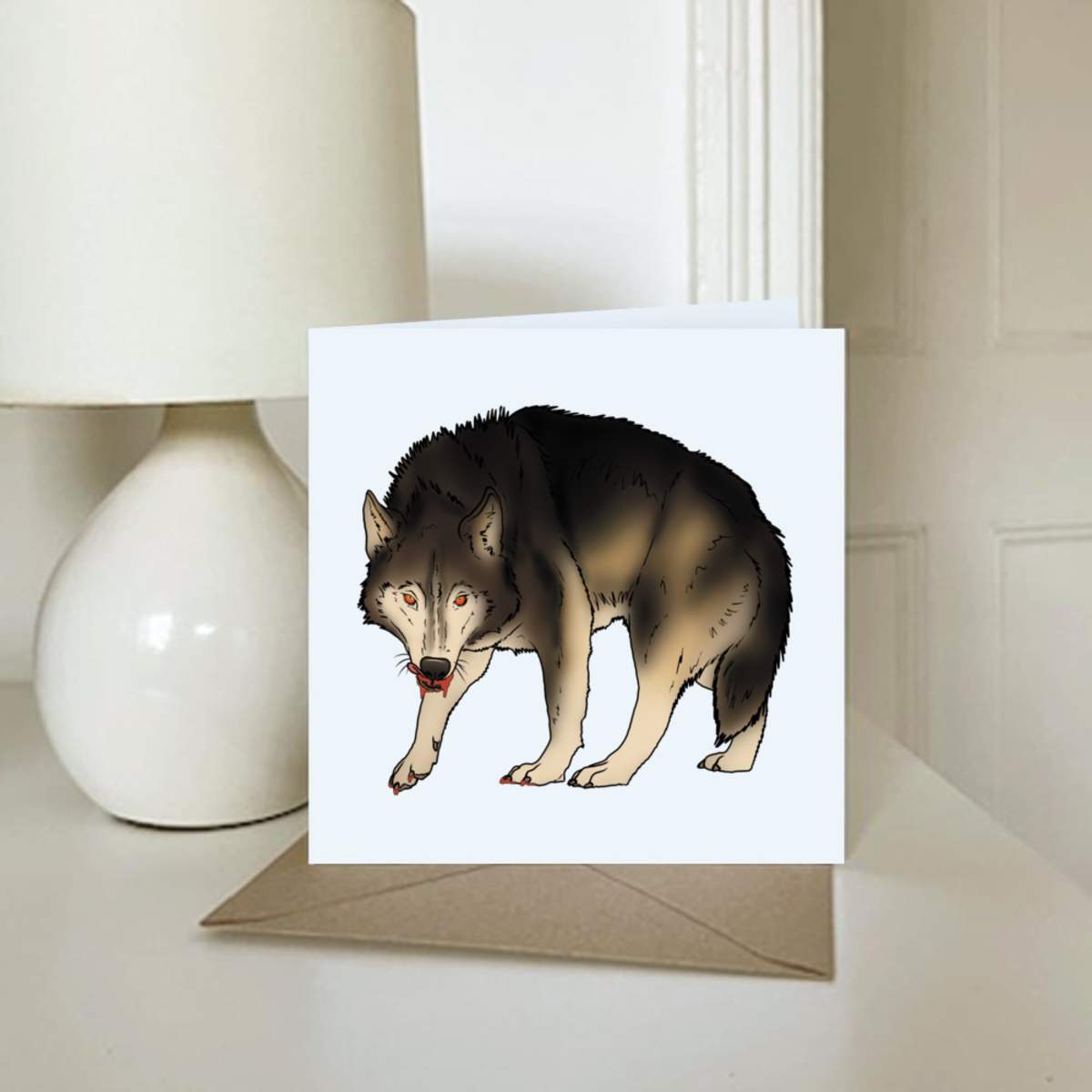 - Square greeting card supplied with a recycled brown envelope
