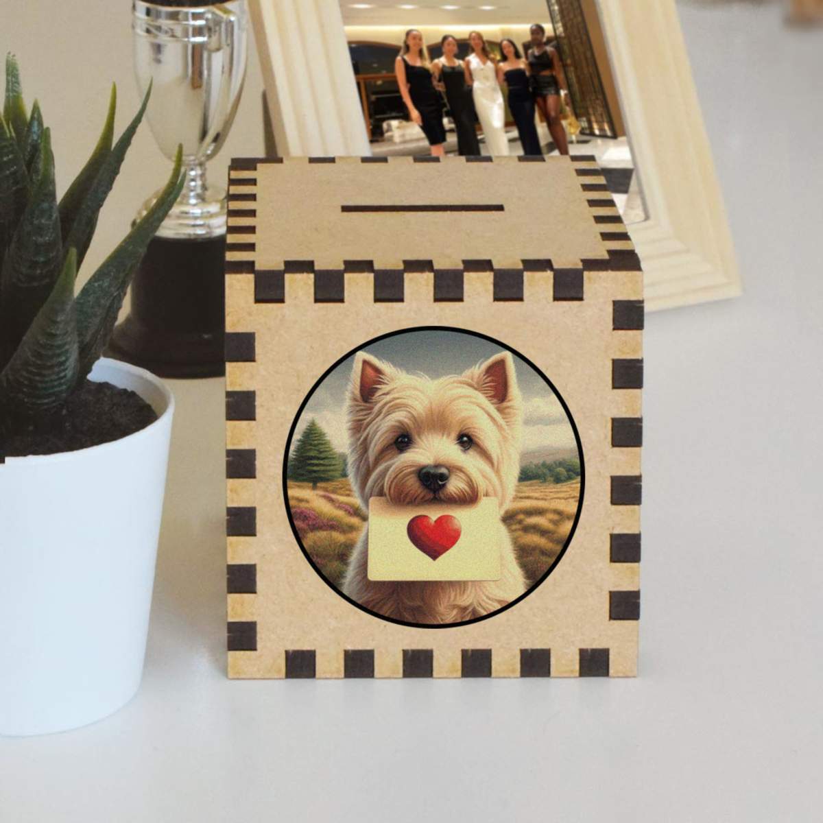 'Illustration of a West Highland Terrier Holding a Love Note'