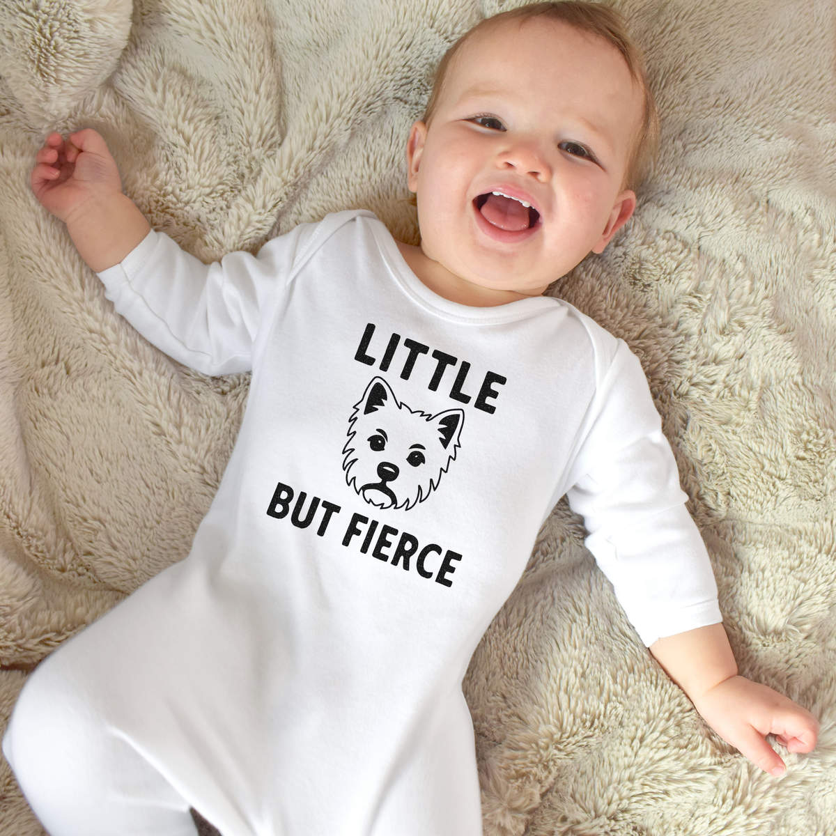'An angry Westie dog face with the words 'Little But Fierce'.'