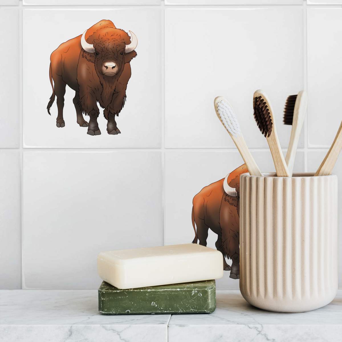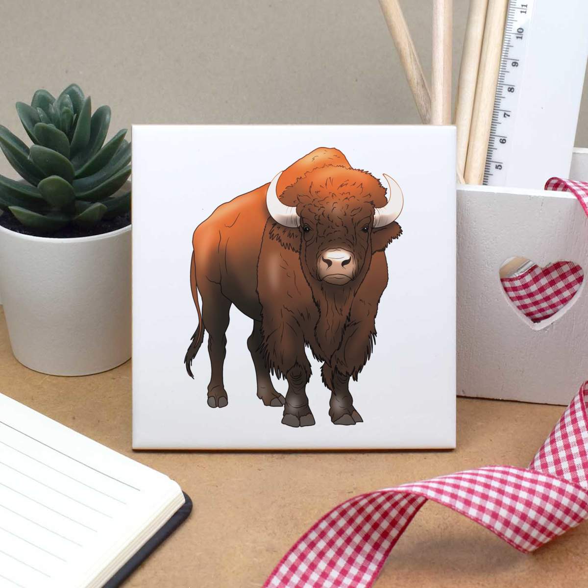 'Wild Bison' 108mm Square Ceramic Tile (TD00033395)